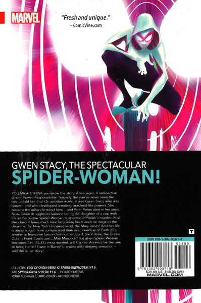 The breakout star of Spider-Verse takes the comics world by storm with her own series! Gwen Stacy is the Spider-Woman of her world, but you knew that already. What you don't know is what's waiting for her when she comes to the other side of the Spider-Verse! On the most tragic day of her life, Gwen was convinced that the Lizard died in her arms along with Peter Parker. But when a new reptilian rampage begins, she is left in doubt...not only about Peter's life, but his death as well. And Gwen's troubles pile up as the Osborns of her world make their debut, and she finds herself on S.H.I.E.L.D.'s most wanted list! Perhaps another Spider-Woman, Jessica Drew, could share some lessons about power and responsibility!