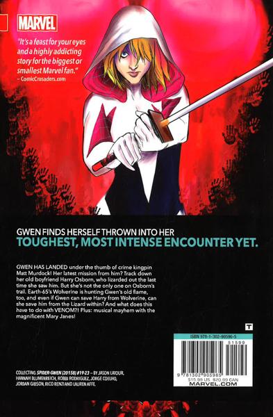 After her adventure with Miles Morales, Gwen finds herself thrown into her toughest, most intense encounter yet. One word: Gwenom! It's the mash-up to end all mash-ups, but the stakes are very high and the consequences are very real! Will Spider-Gwen be able to get through this new challenge in one piece?