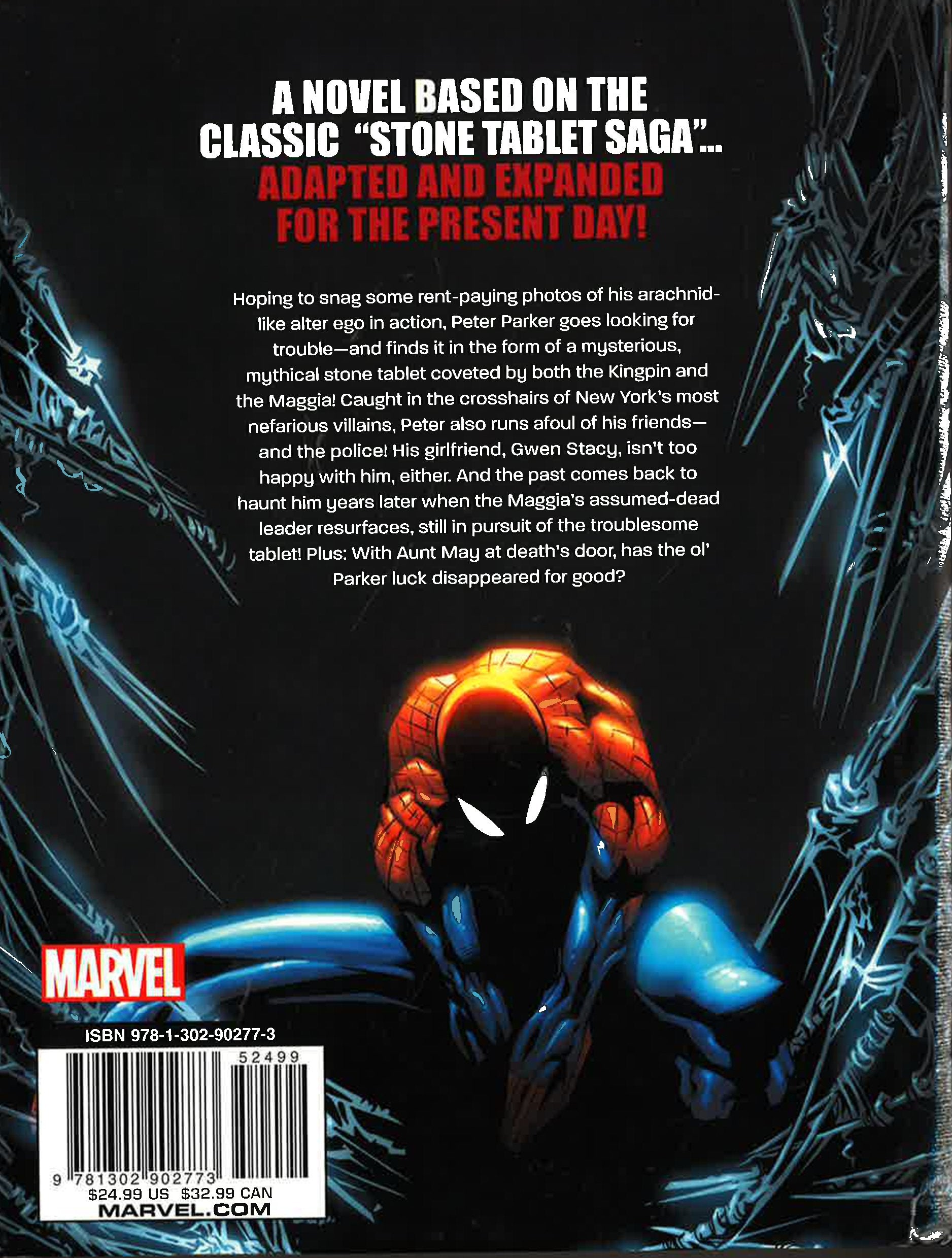 Take a swing through Spider-Man's past in a novel based on a classic tale - with an all-new story for the present day! Broke - again - and running out of excuses for girlfriend Gwen Stacy, Peter Parker goes looking for trouble, hoping to snag some rent-paying photos of his alter ego in action. But trouble comes to him when the Kingpin and the Maggia converge in a battle for a mysterious tablet! When the fight spills over to Empire State University, Peter finds himself in the crosshairs of not only the city's most nefarious villains, but also his friends - and the police! Stefan Petrucha puts his pen to the classic "Stone Tablet Saga," which ComicsReview.com calls "Stan Lee's Marvel and Spider-Man at their peak." But the story doesn't end there: When the assumed-dead leader of the Maggia resurfaces, it'll take all of Spider-Man's wits to track him down! It doesn't help that Peter's beloved Aunt May may be dying. Can Peter fight off his enemies, save his aunt and graduate from college? Or has the ol' Parker luck disappeared for good?