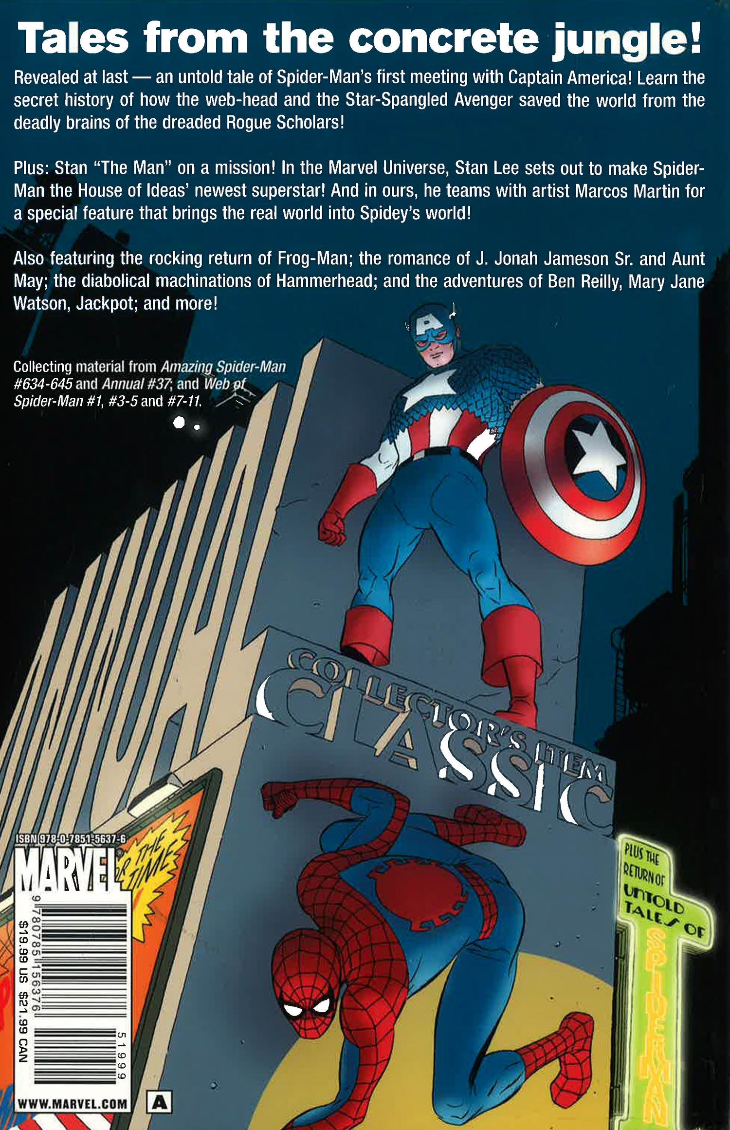 SPIDER-MAN'S FIRST MEETING WITH CAPTAIN AMERICA! An Untold Tale of Spider-Man reveals the web-head's very first meeting with the Avenger! Find out the secret history of how the Marvel Universe's two biggest icons save the world fromthe ROGUE SCHOLARS! Also, Spidey creator Stan Lee returns with Marcos Martin for a special feature that brings the real world into Spidey's world! All this plus much more! *This book may have a remainder mark*