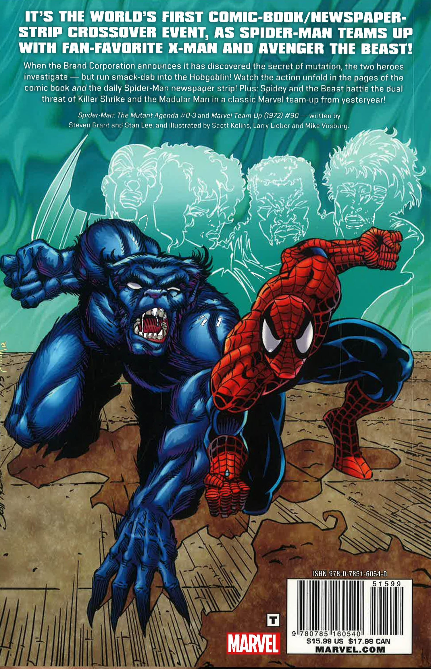 It's the world's fi rst comic book/newspaper strip crossover event, as Spider-Man teams up with fan-favorite X-Man and Avenger the Beast! When the Brand Corporation announces that it has discovered the secret of mutation, the two heroes investigate - but run smack-dab into the Hobgoblin! Watch the action unfold in the pages of the comic book AND the daily Spider-Man newspaper strip! Plus, a classic Marvel Team-Up from yesteryear, as Spidey and the Beast battle the dual threat of Killer Shrike and the Modular Man! COLLECTING: SPIDER-MAN: THE MUTANT AGENDA 0-3, MARVEL TEAM-UP (1972) 90