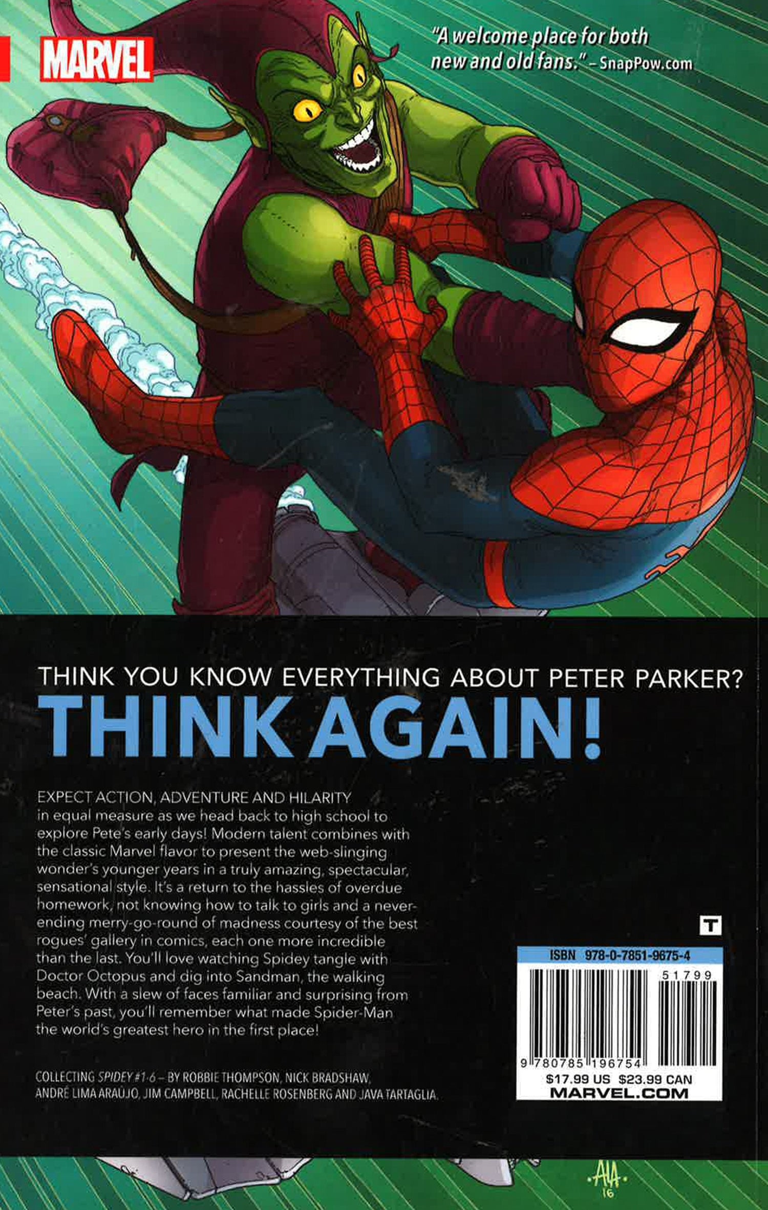 Think you know everything about Peter Parker? Think again! Expect action, adventure and hilarity in equal measure as we head back to high school to explore Pete's early days! Modern talent combines with the classic Marvel flavor to present the web-slinging wonder's younger years in truly amazing, spectacular, sensational style. It's a return to the hassles of overdue homework, not knowing how to talk to girls and a never-ending merry-go-round of madness courtesy of the best rogues'gallery in comics, each one more incredible than the last. You'll love watching Spidey tangle with Doctor Octopus and dig Sandman, the walking beach. With these and more faces from Peter's past -both familiar and surprising figures -you'll remember what made Spider-Man the world's greatest hero in the first place! COLLECTING: SPIDEY 1-6