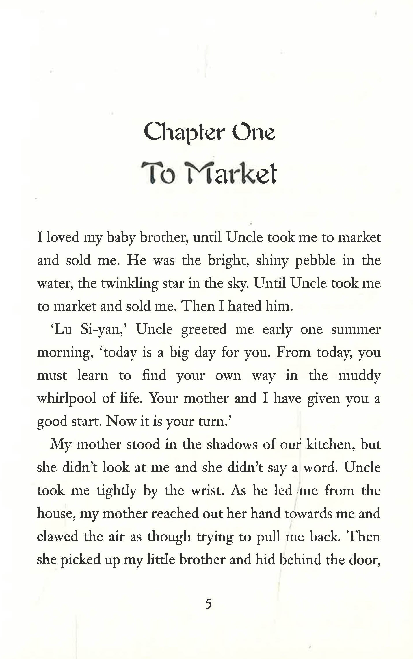 When her father dies, Lu Si-yan, just eleven, is sold into domestic service by her uncle. Nearly two years will pass before she can get back home to her mother and brother. In this powerful and compelling novel Sally Grindley portrays the life of a young girl in modern-day China, a young girl whose life is said to be like 'spilled water'.