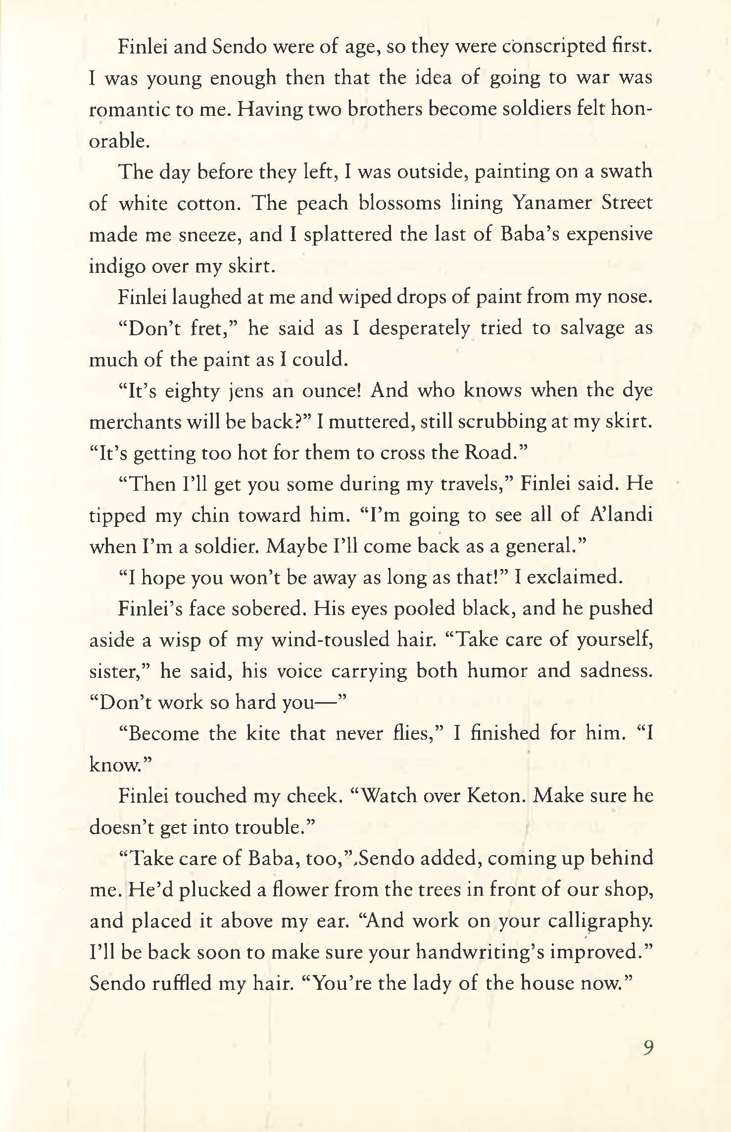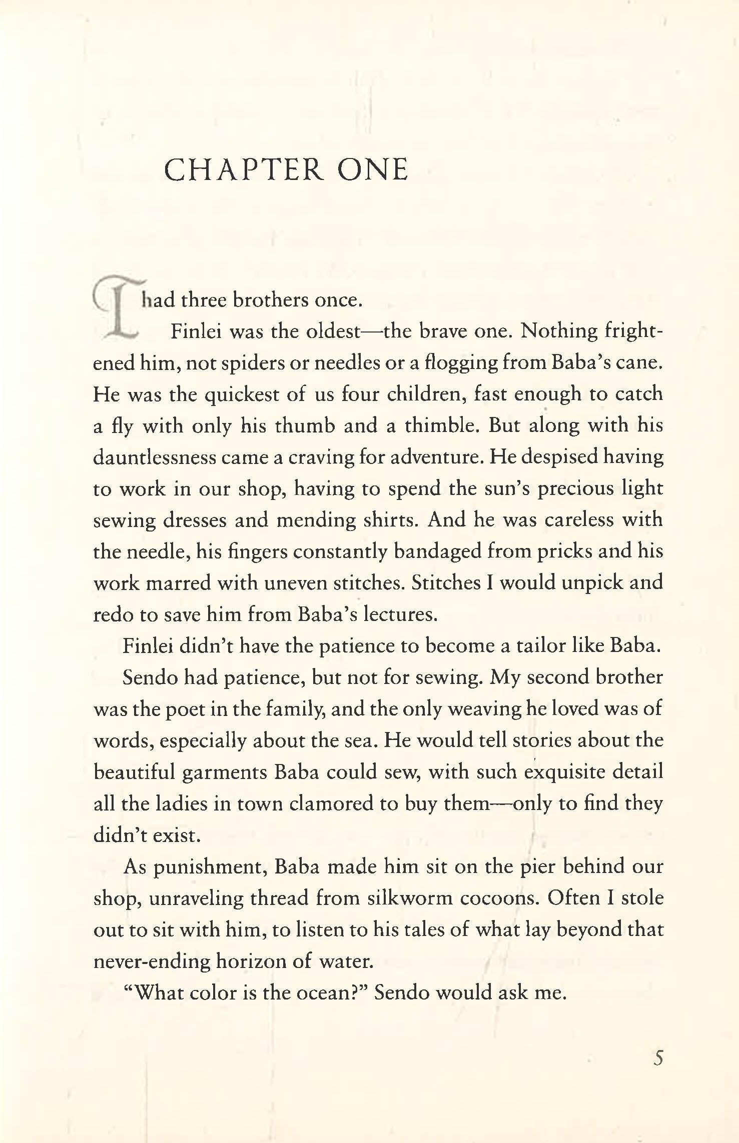 Yet nothing could have prepared her for the challenge ahead: to sew three magic gowns for the emperor's bride-to-be. One from the laughter of the sun, one from the tears of the moon, and one from the blood of stars.