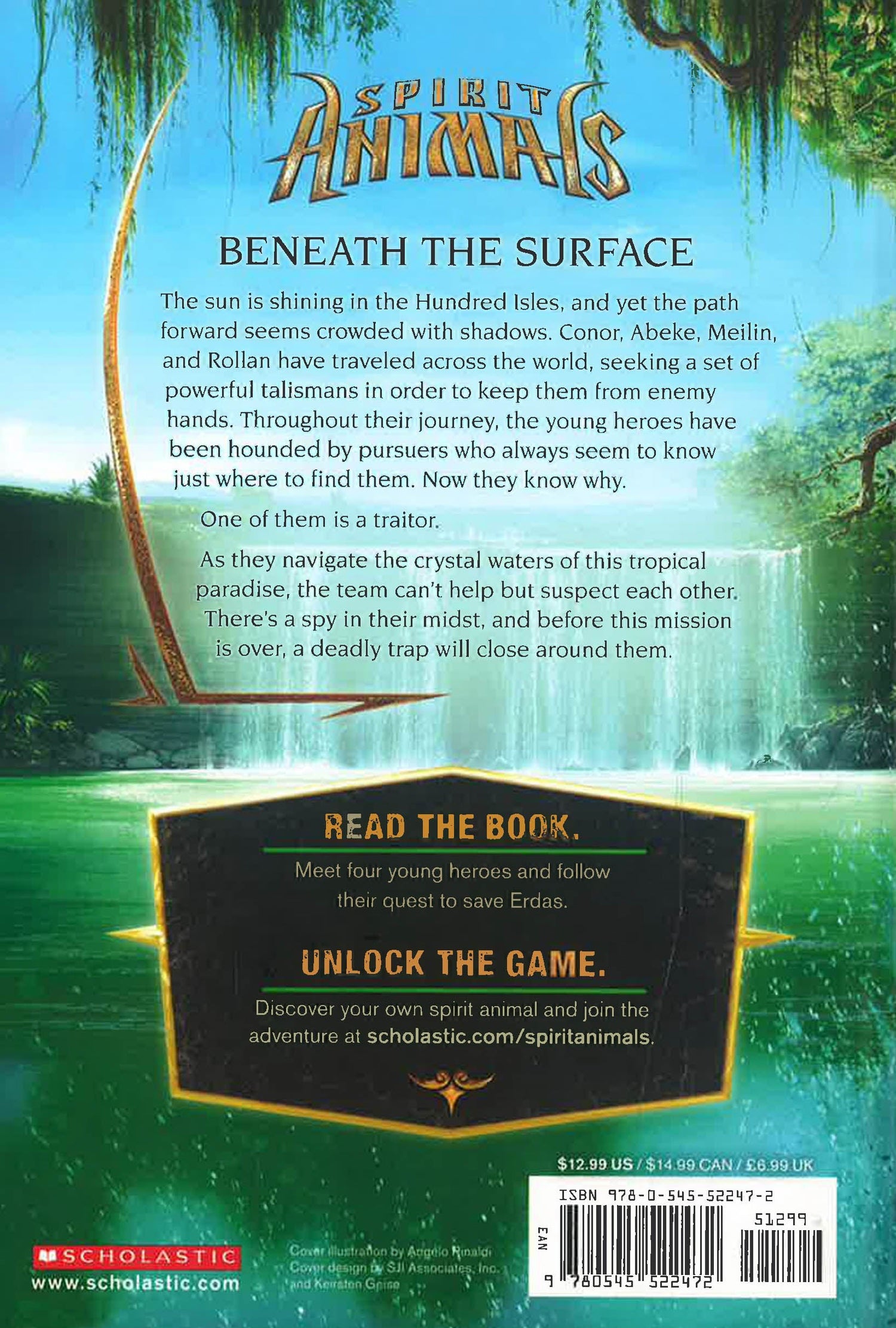 The adventure continues in this epic multiplatform fantasy series. The sun is shining in the Hundred Isles, and yet the path forward seems crowded with shadows. Conor, Abeke, Meilin, and Rollan have traveled across the world, seeking a set of powerful talismans in order to keep them from enemy hands. Throughout their journey the young heroes have been hounded by pursuers, who always seem to know just where to find them. Now they know why. One of them is a traitor. As they steer the crystal blue waters of this tropical paradise, the team can't help but suspect each other. There's a spy in their midst, and before this mission is over, a deadly trap will close around them.