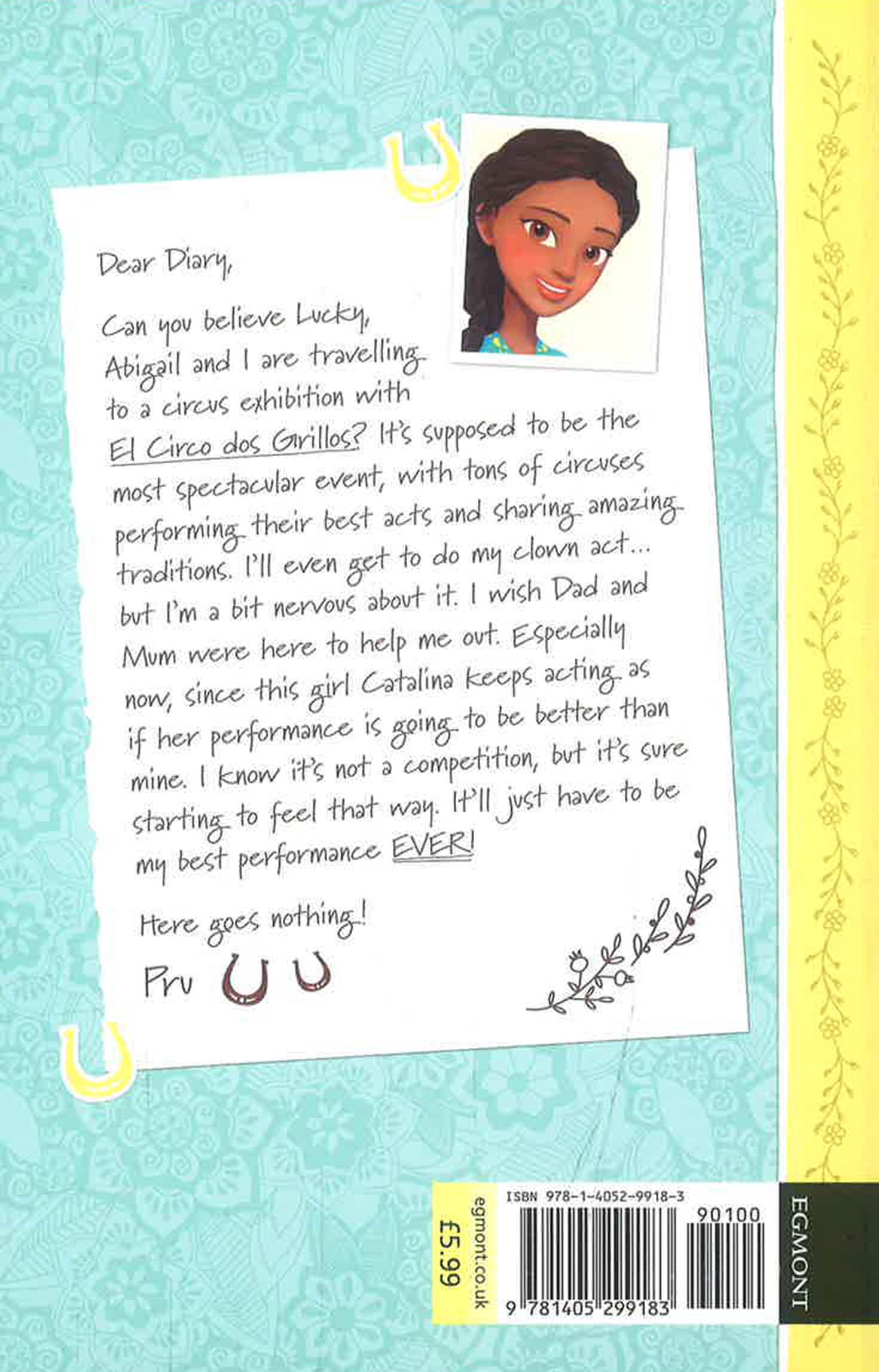 Can you believe Lucky, Abigail and I are travelling to a circus exhibition with El Circo dos Grillos? It's supposed to be the most spectacular event, with tons of circuses performing their best acts and sharing in amazing traditions. I'll even get do my clown act…but I'm feeling a bit nervous about it. I wish Dad and Mom were here to help me out. Especially now, since this girl Catalina keeps acting like her clown performance is going to be better than mine. I know it's not a competition, but it's sure starting to feel that way. It'll just have to be my best performance EVER!