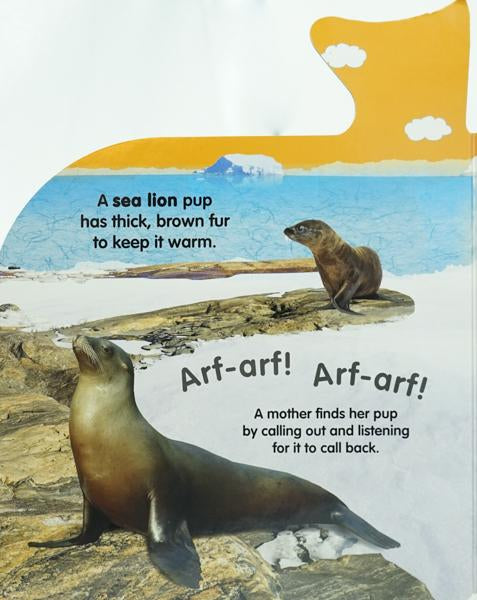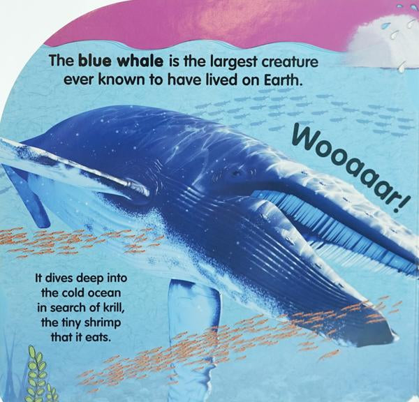 Splash in the ocean with 10 sound buttons! Swim through the world's oceans and learn about whales, seals, dolphins and more with stunning photography. Then press the sound buttons to hear all the splashing, singing, roaring and squeaking!