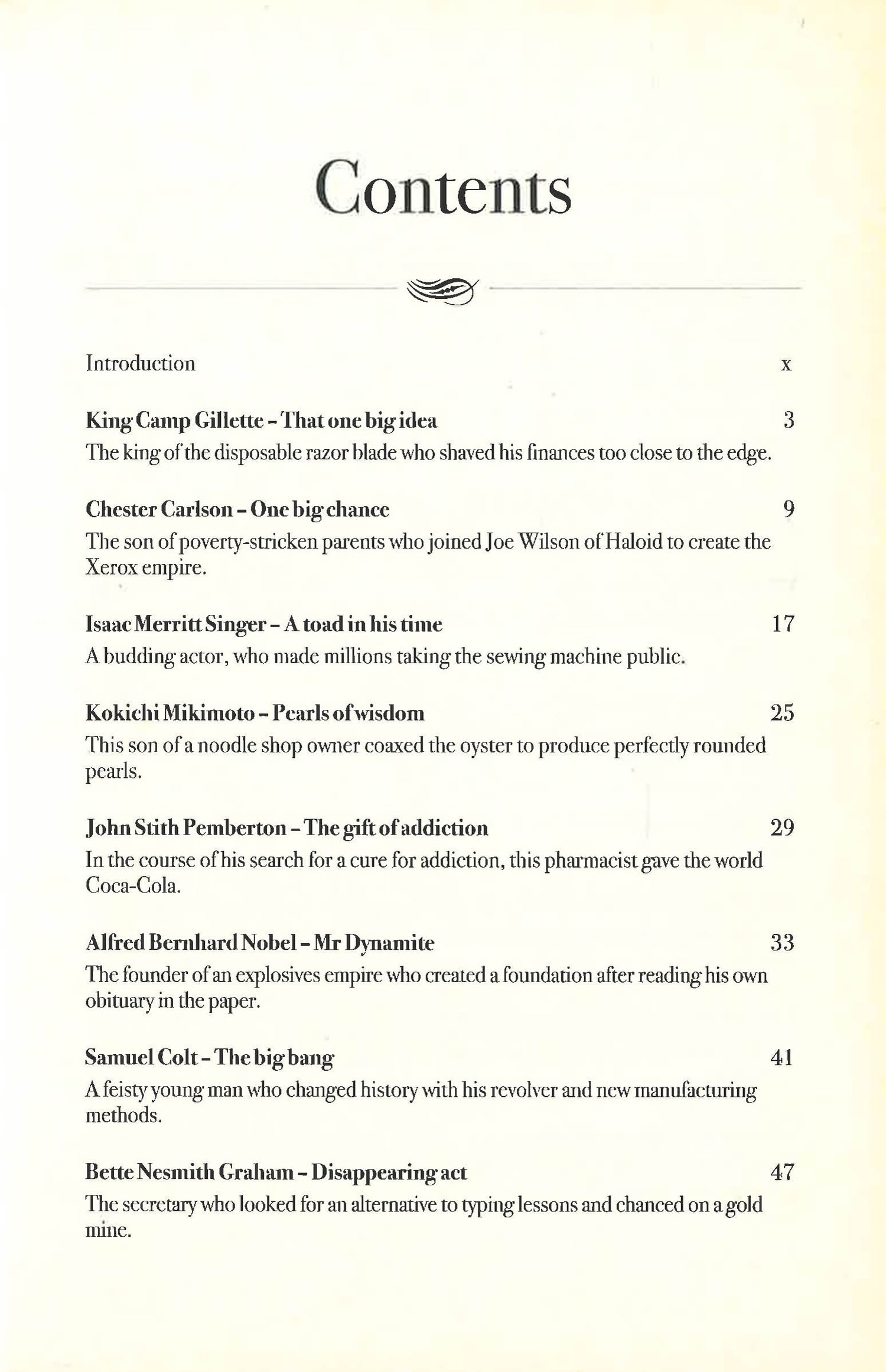 Jeremy Coller, a pioneer in the world of private equity, argues that there are three basic personality types in the arena of invention. The Principal, Broker, and Consultant each display certain traits that dictate the potential for success, but few people have the full package. Failure results when an individual who excels in one area of competence attempts to become all things. In Splendidly Unreasonable Inventors, Coller focuses on the individual rather the invention and explores the ways in which he or she did or did not succeed in bringing their vision to fruition. On one level, the book is a collection of fascinating stories packed with quirky, often humorous nuggets of information. On another level, these stories provide an unconventional look at the processes and personalities that created products that changed the world, including: Jonas Salk and the polio vaccine; King Gillette and the safety razor; Alfred Nobel and dynamite; Sam Colt and the revolver; Rudolph Diesel and the diesel engine.