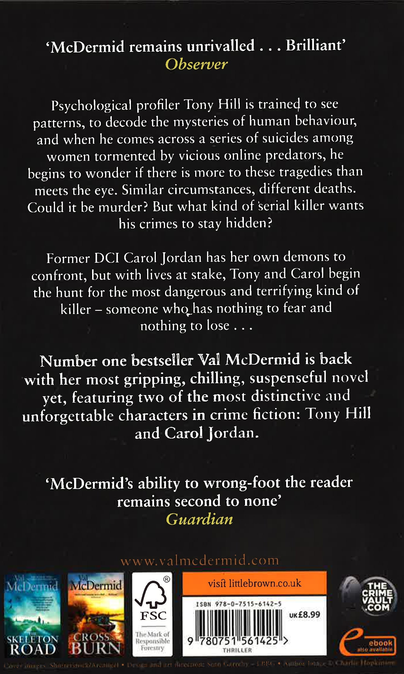 Number one bestseller Val McDermid is back with her most gripping, chilling, suspenseful novel yet, featuring two of the most distinctive and unforgettable characters in crime fiction: Tony Hill and Carol Jordan.