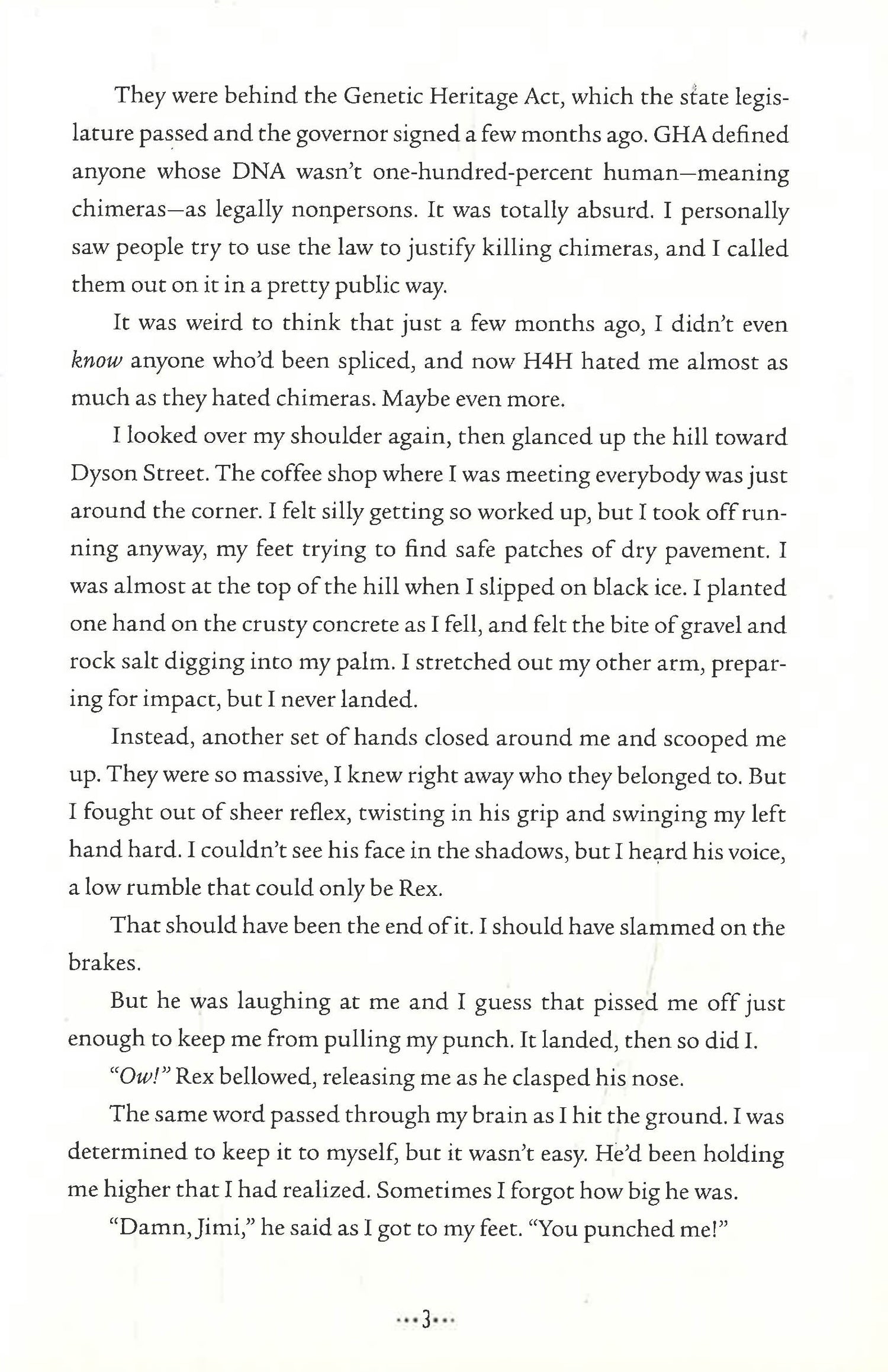 When her friend Dr. Guzman, a chimera sympathizer, is arrested for the murder of a chimera wearing a strange medical bracelet, Jimi does some digging--and eventually discovers that Howard Wells, the venal businessman