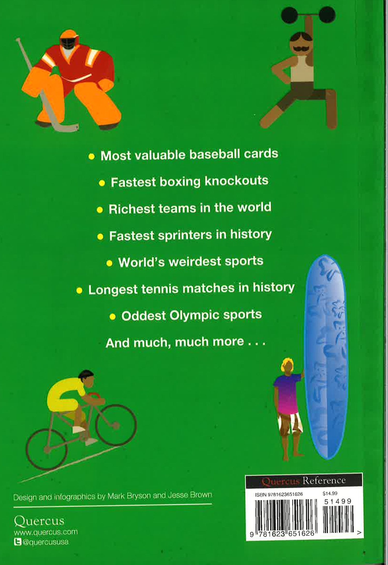 The world of sport in 101 quirky and amusing infographics. From the authors of Infographica comes a quirky, irreverent, and informative guide to the most important milestones of sports history. Covering a range of topics from the earliest Olympic sports to the fastest knock-outs in boxing world fights. With 101 clever and comprehensive sports illustrations that help readers visualize information in a new and exciting way, Sportographica is the perfect gift for sports trivia buffs with a sense of humor.