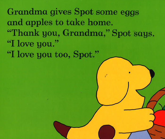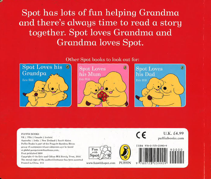 Spot loves spending the day with his Grandma and Grandpa. Whether he's helping Grandma make lemonade, or swimming in the pool with Grandpa, it's always a fun time when he visits. A follow-up to the popular Spot Loves His Mommy and Spot Loves His Daddy, these simple, colourful board books are perfect for sharing with special grandparents anytime