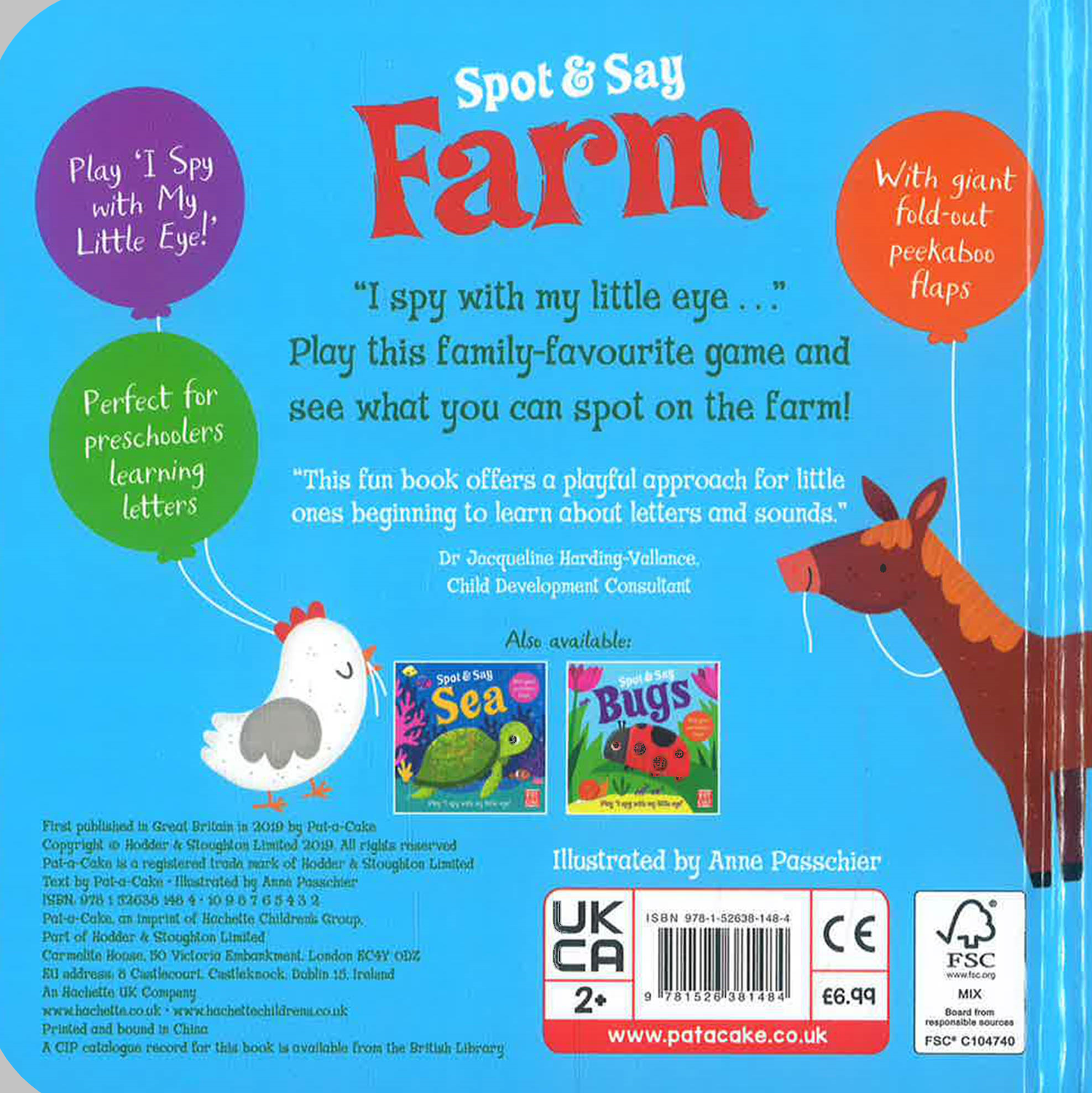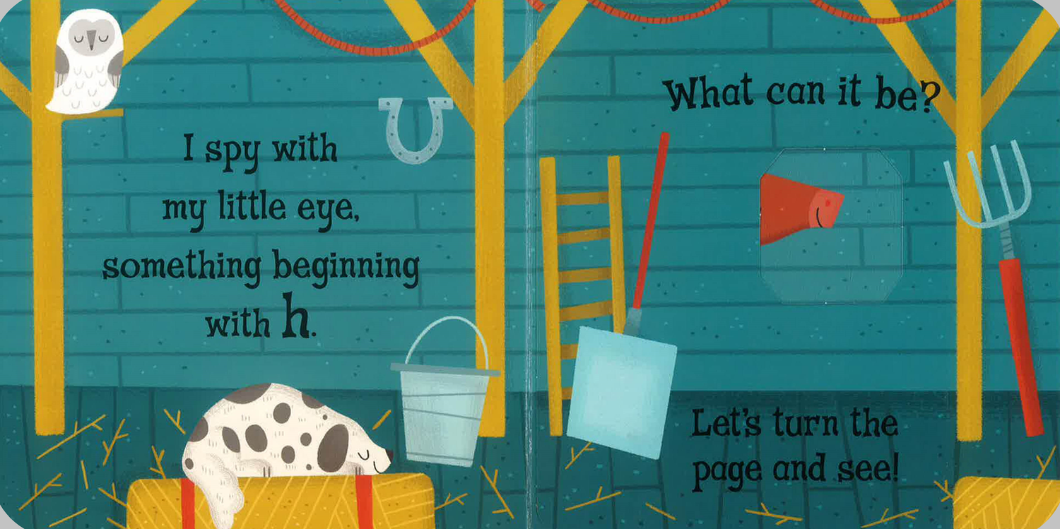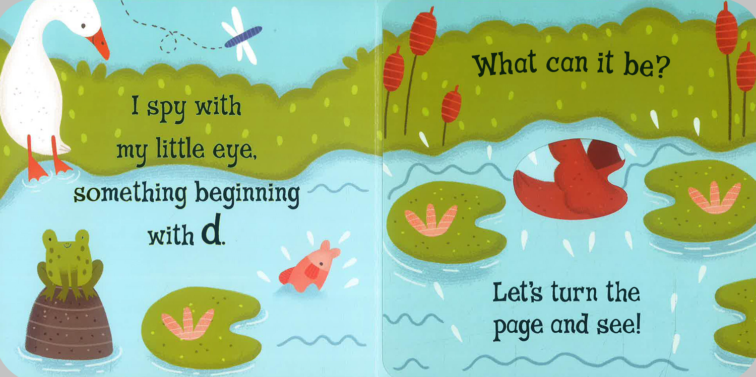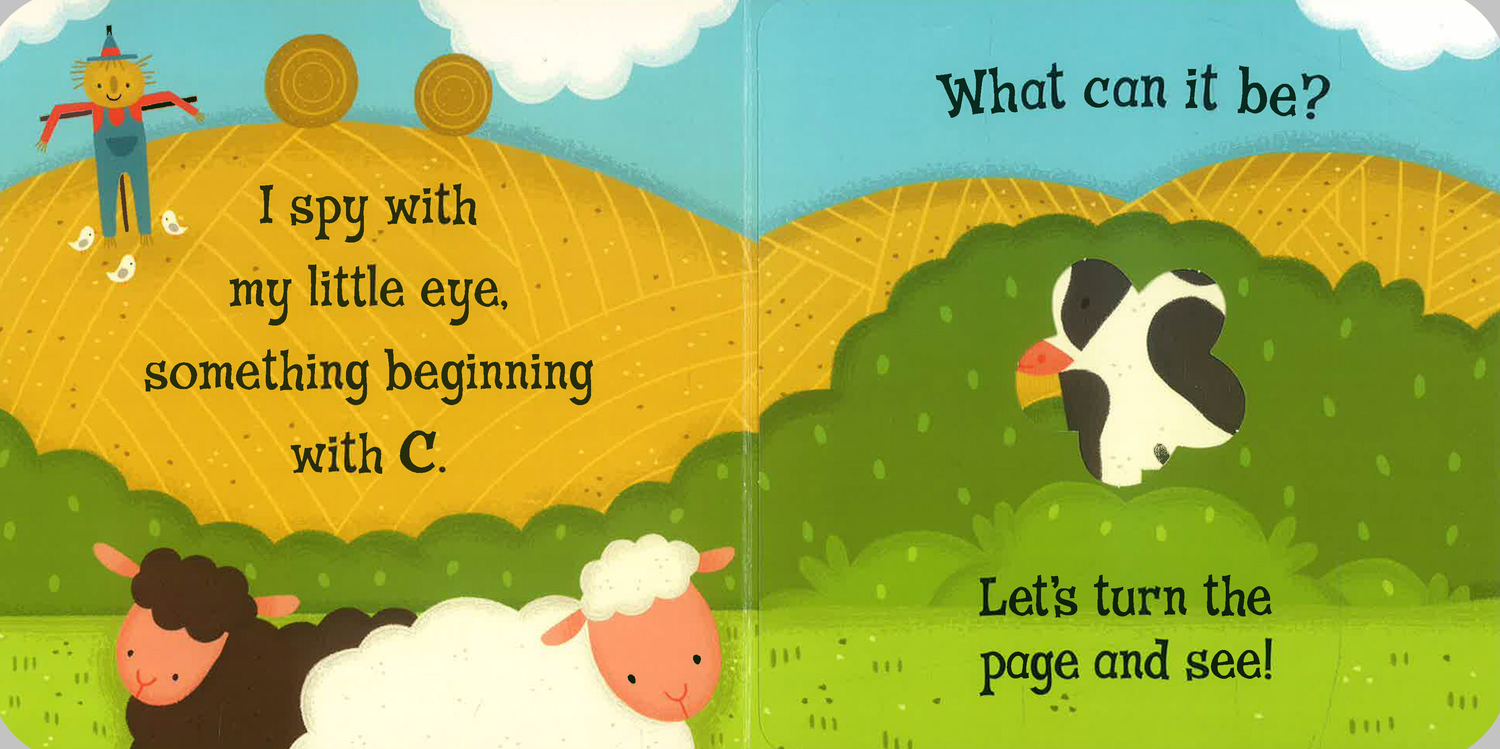The family favourite game 'I Spy' is brought to life in this fun book - can you spot the cow and her calf on the farm? Giant peek-through flaps offer clues to help guessing, and there are lots of other animals to spot, too. Charming, bright illustrations will entice preschoolers who are exploring their new fascination with letters and sounds, and the sturdy peekaboo flaps will bring hours of fun! Perfect for learning essential skills through play. Also Spot and Jungle