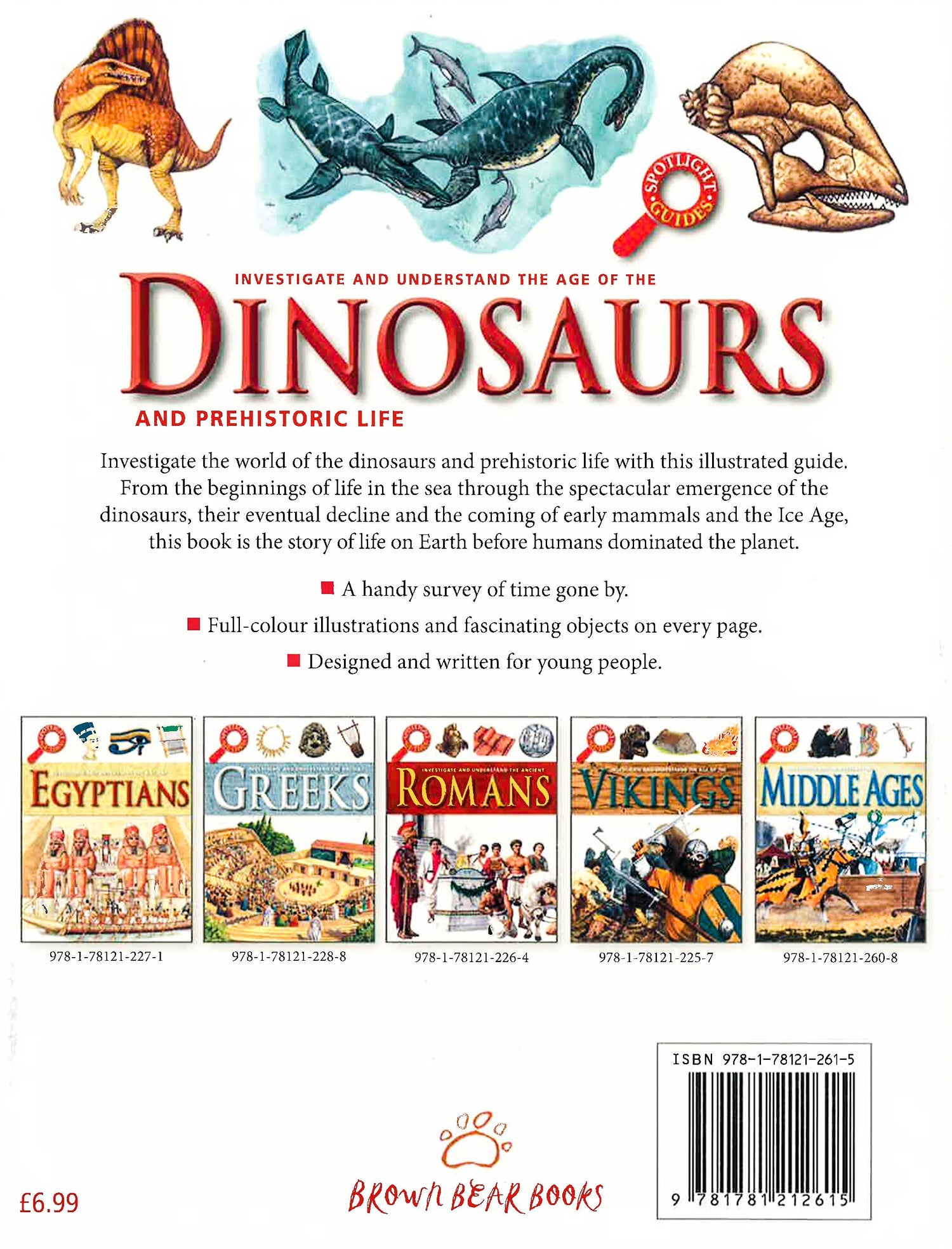 From the origin of life, through the age of dinosaurs stalked by the terrifying Tyrannosaurus rex, to the earliest humans, this book tells the story of life on Earth. Dinosaurs may be the stars of the show, but the book is truly comprehensive, with fossil plants, invertebrates, amphibians, fish, birds, reptiles, mammals, and even early bacteria conjuring up an entire past world. To put all of these extinct species in context, the book explores geological time and the way life forms are classified. It also looks at how fossils preserve the story of evolution and how that story can be deciphered. The "Young Earth" chapter explains how forces shaped Earth and steered the course of life. The main part of the book, "Life on Earth," lays out and catalogs the rich story of life, from its beginnings 4 billion years ago, through each geological period, such as the Jurassic and Cretaceous, to the present. The stunning visuals and authoritative text make Dinosaurs and Prehistoric Life a fascinating and revealing encyclopedia that will appeal to the whole family