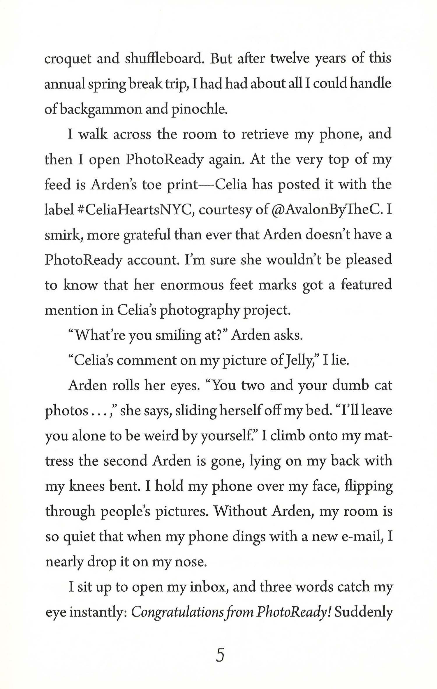 After years of suffering through the most boring spring vacations ever, Avalon Kelly is ready for a week of adventure. On a hash-tagged whim, she entered the PhotoReady app’s spring break getaway contest to NYC - and won! But right away, this trip of a lifetime isn’t turning out as planned. Avalon’s best friend isn’t one of the PhotoReady winners, which means that not only will Avalon have to venture to the Big Apple by herself, but she’ll be assigned a stranger as a roommate. The perky and talkative Sofia seems pleasant enough, but snooty Kensington - who was placed in Room 609 at the last moment due to a mix-up - is a whole other story. Just when Avalon is about ready to abandon the trip entirely, one of the fellow contest winners, the cute and mysterious Tate, disappears from the group, and the Room 609 girls must band together, using the clues within their photographs, if they have any hope of tracking him down. Will the hunt for Tate and the view of New York City through her camera lens be enough to convince Avalon to stick it out for the full week?