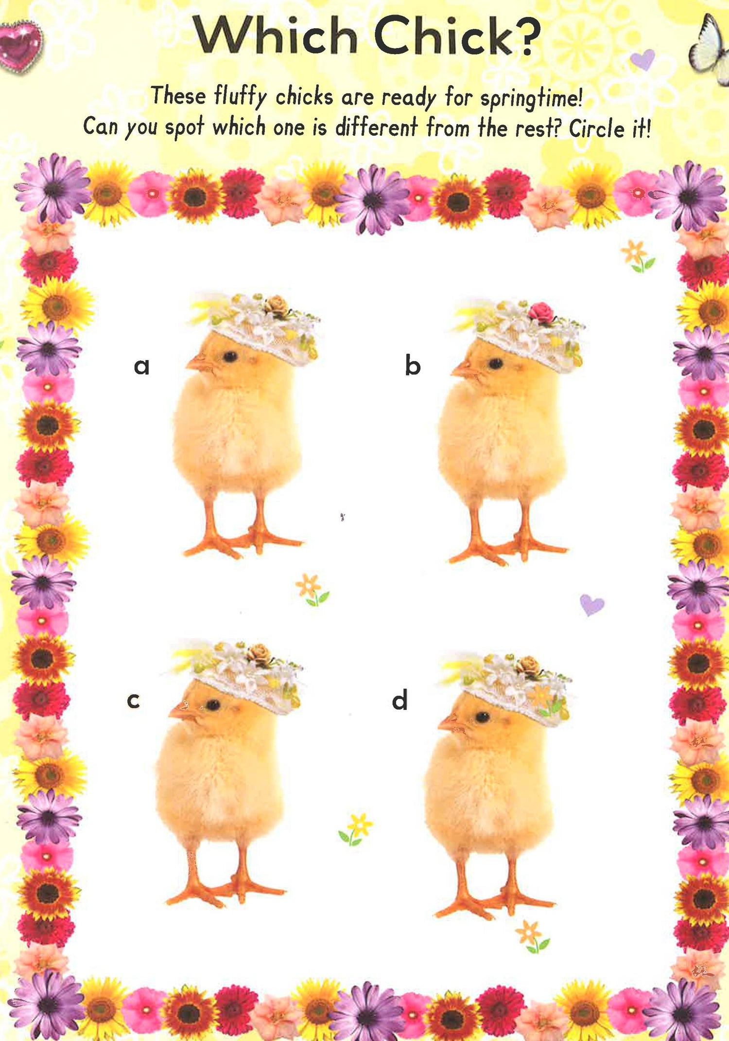 An activity book with spring and Easter themes, chock-full of coloring pages, puzzles, and over 500 stickers! Children will love this adorable springtime activity book that's packed with coloring pages, puzzles, and over 500 stickers! Filled with images of bunnies, chicks, and other cute, furry critters, this is the ideal treat for Easter baskets!