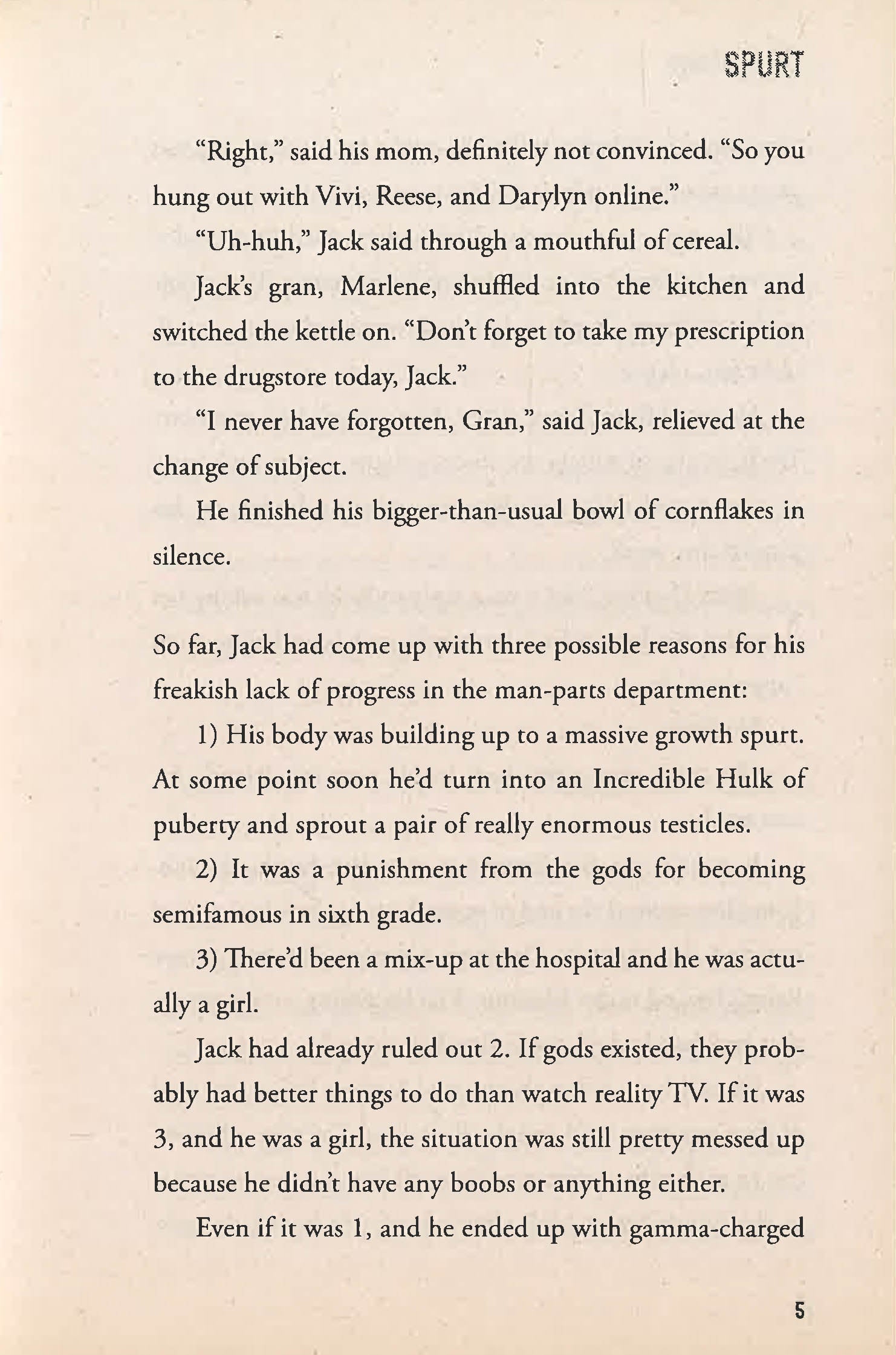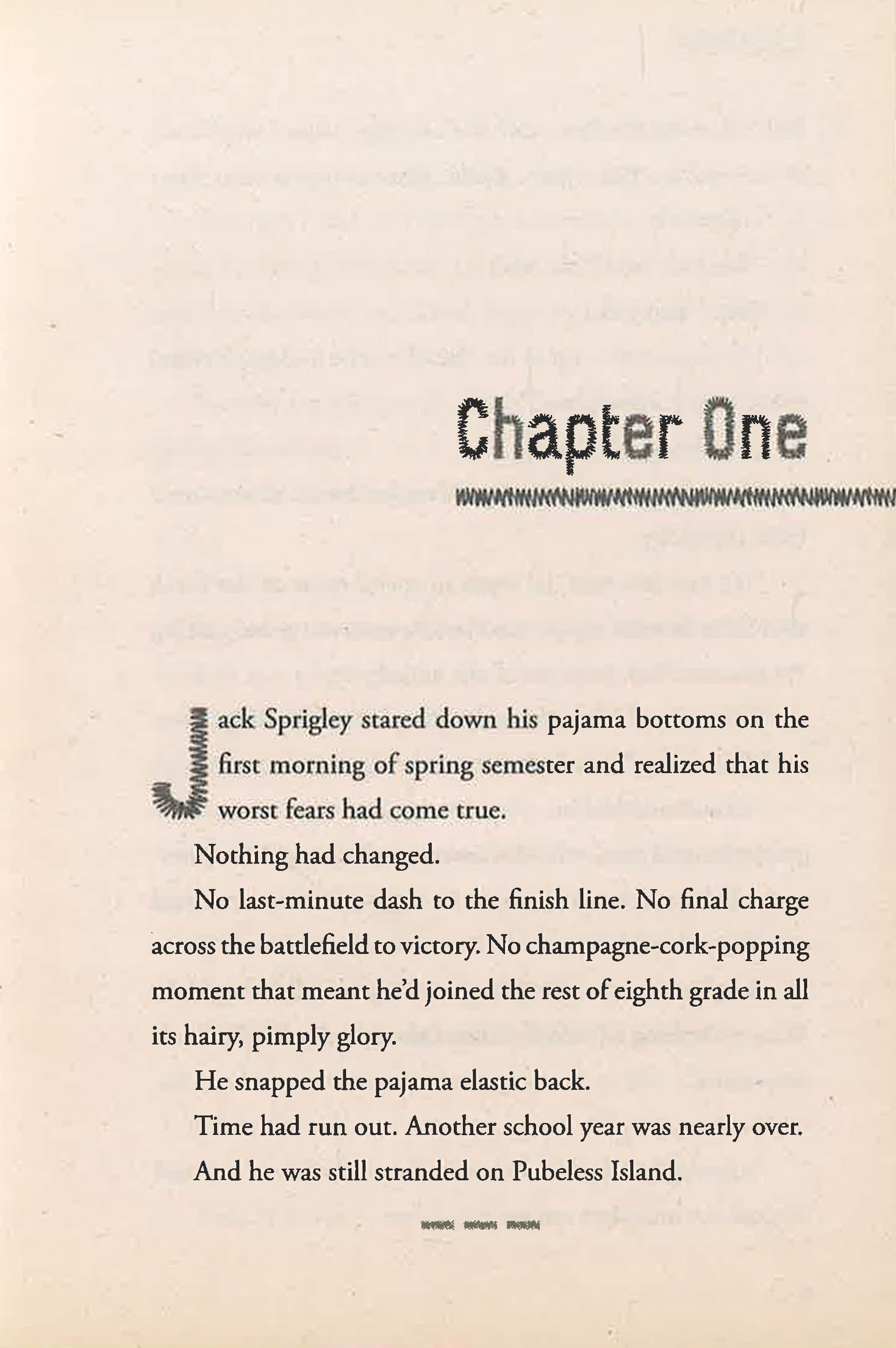 Jack Sprigley isn’t just a late-bloomer. He’s a no-bloomer. He’s in the eighth grade, and puberty is still a total no-show.Worse yet, he hasn’t heard from his friends all winter vacation. He assumes they’ve finally dumped him and his child-like body - except then he finds out that it’s much worse than that. His friends are now so far ahead of him that they’ve started dating and getting girlfriends. Jack is out of luck. But then he comes up with a plan to catch up and win his friends back. And his plan is perfect: he just has to fake puberty.