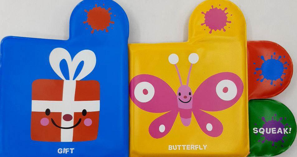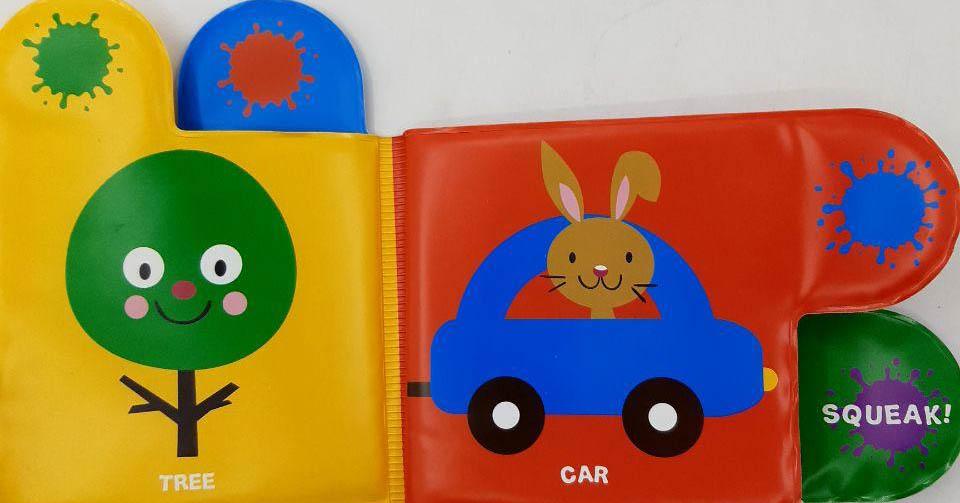 Brightly illustrated bath books for endless splishing and splashing in the tub. The special squeaking button will make bath time even more fun!