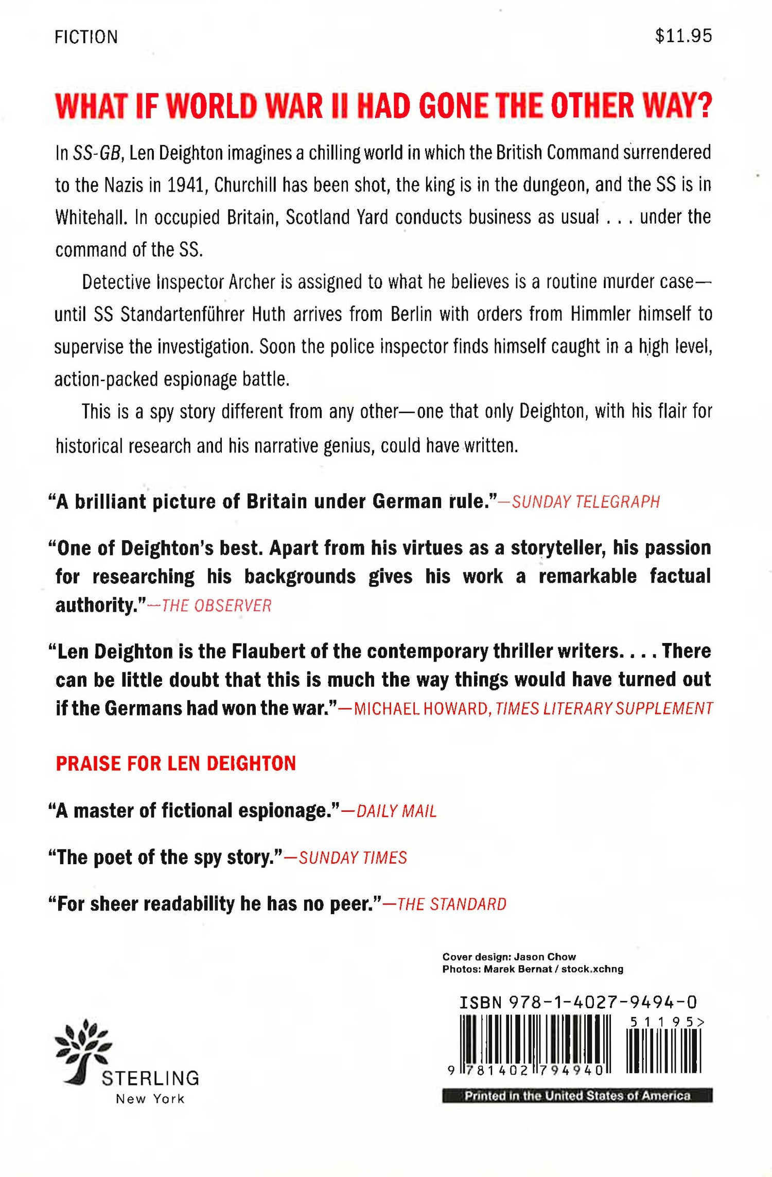 What if WWII went the other way? In this alternative-history novel, Deighton imagines a chilling world where British Command surrendered to the Nazis in 1941, Churchill has been shot, the King is in the dungeon, and the SS are in Whitehall. In occupied Britain, Scotland Yard conducts business as usual...only under the command of the SS. Detective Inspector Archer is assigned to what he believes is a routine murder case--until SS Standartenfuhrer Huth arrives from Berlin with orders from Himmler himself to supervise the investigation. Soon, Archer finds himself caught in a high level, action-packed espionage battle. This is a spy story different from any other--one that only Deighton, with his flair for historical research and his narrative genius, could have written.