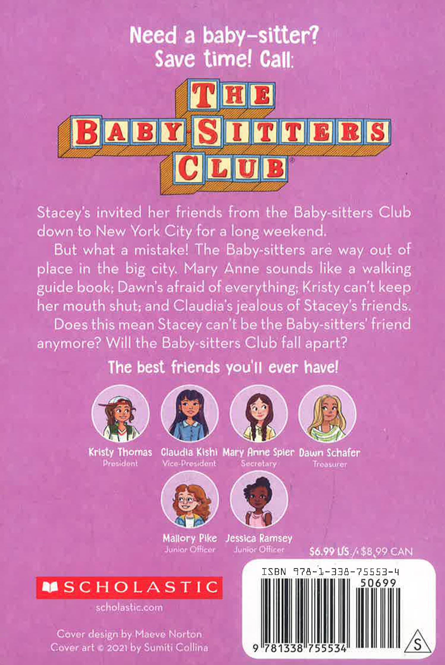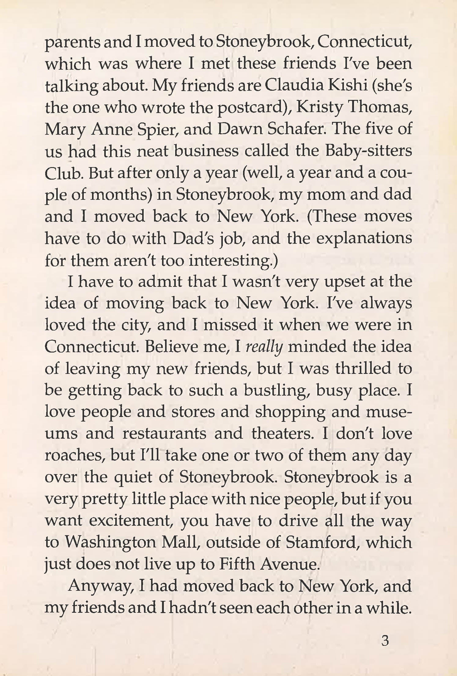 But what a mistake! The Baby-sitters are way out of place in the big city. Mary Anne sounds like a walking guide book; Dawn's afraid of everything; Kristy can't keep her mouth shut; and Claudia's jealous of Stacey's friends.