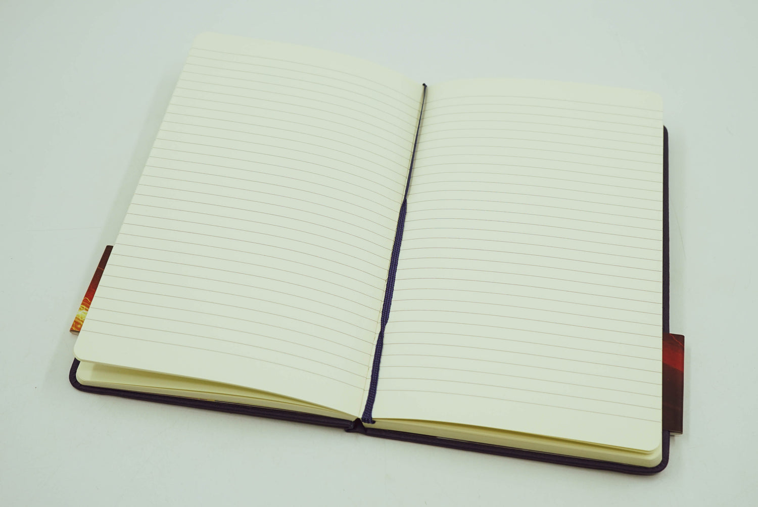 With sturdy construction and sewn binding, this journal lies flat, and the 192 ruled, acid-free pages of high-quality heavy stock paper take both pen and pencil nicely to invite a flow of inspiration. Includes a ribbon placeholder, elastic closure, and 7.5 x 4.5-inch back pocket, perfect for holding photographs and mementos.