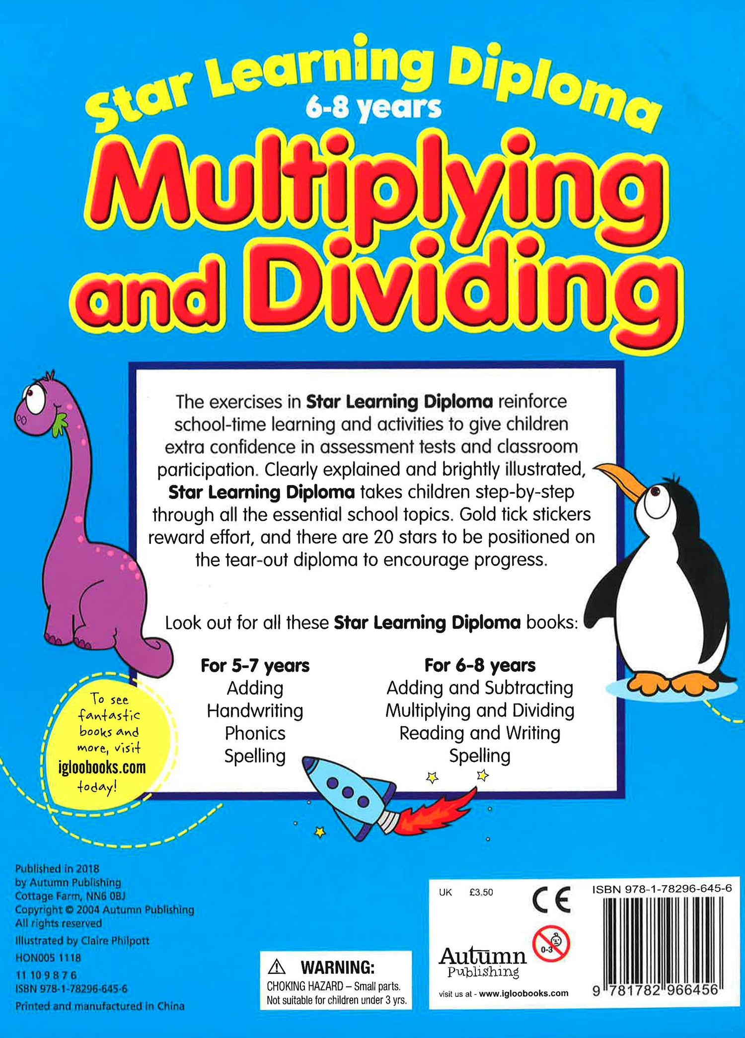 The exercises in Star Learning Diploma reinforce school-time learning and activities to give children extra confidence in assessment tests and classroom participation. Clearly explained and brightly illustrated, Star Learning Diplomatakes children step-by-step through all the essential school topics. Gold tick stickers reward effort, and there are 20 stars to be positioned on the tear-out diploma to encourage progress.