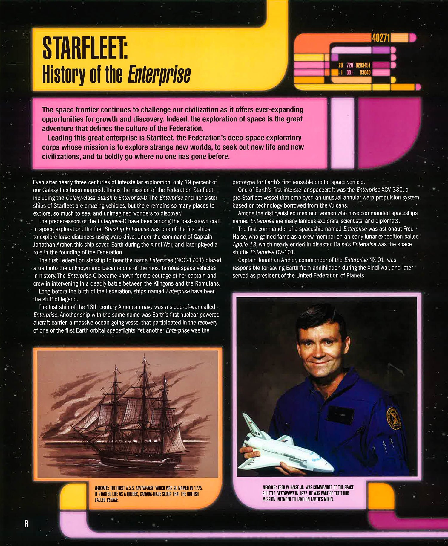Star Trek" fans--or Trekkies--have been collecting "Star Trek" souvenirs, artifacts, and memorabilia for many years, and they'll be thrilled with this brand-new book and CD-ROM package. Scheduled for publication in time to coincide with release of the latest "Star Trek" movie, as well as the 25th anniversary of "Star Trek: The Next Generation's "TV debut, this amazing book delights fans with-- A spectacular double-page spread detailing the history of the starship "Enterprise " in words and vivid illustrations Spreads and gatefolds with 3D features illustrating the "Enterprise " from all angles, including a side-on cutaway diagram showing the craft's interior Views of the ship's bridge, showing the captain's chair, main consoles, and the functions that the consoles control Living quarters, including Captain Picard's suite, junior officers' quarters, and other locations that fans will immediately recognize Artifacts, floor plans, photos from the TV show . . . and much more Enclosed with the book is a fabulous CD-ROM that gives viewers a detailed tour of the "Enterprise ." This remarkable software program was developed in close cooperation with the creators of the "Star Trek" sets that were used in the films and on the television series. "On Board the U.S.S. Enterprise " offers Trekkies a once-in-a-lifetime ticket to one of the most popular and beloved sci-fi adventures of all time.