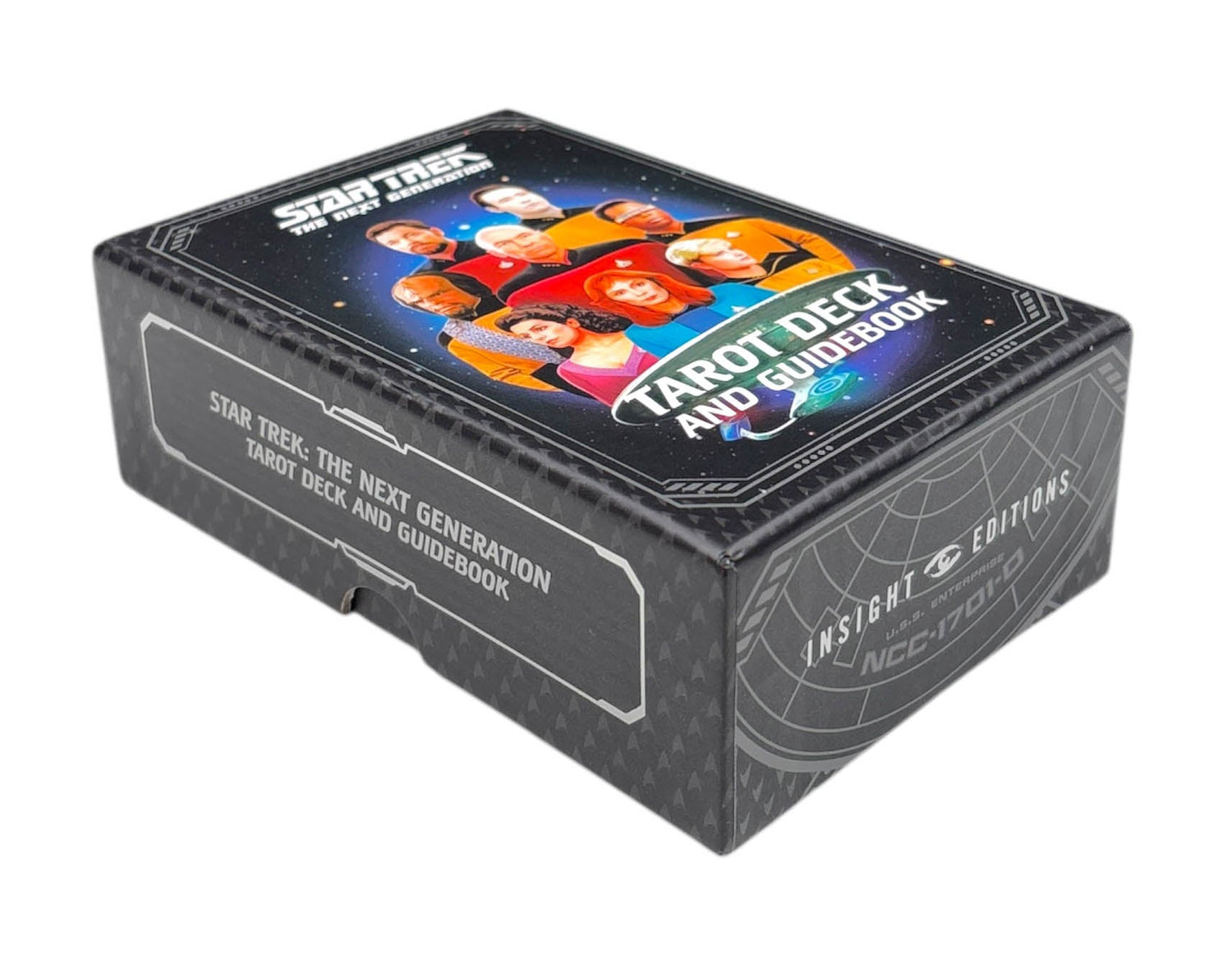 Engage with the cosmos at a whole new level with this sumptuously illustrated tarot deck featuring captivating visions of the characters from Star Trek: The Next Generation.
