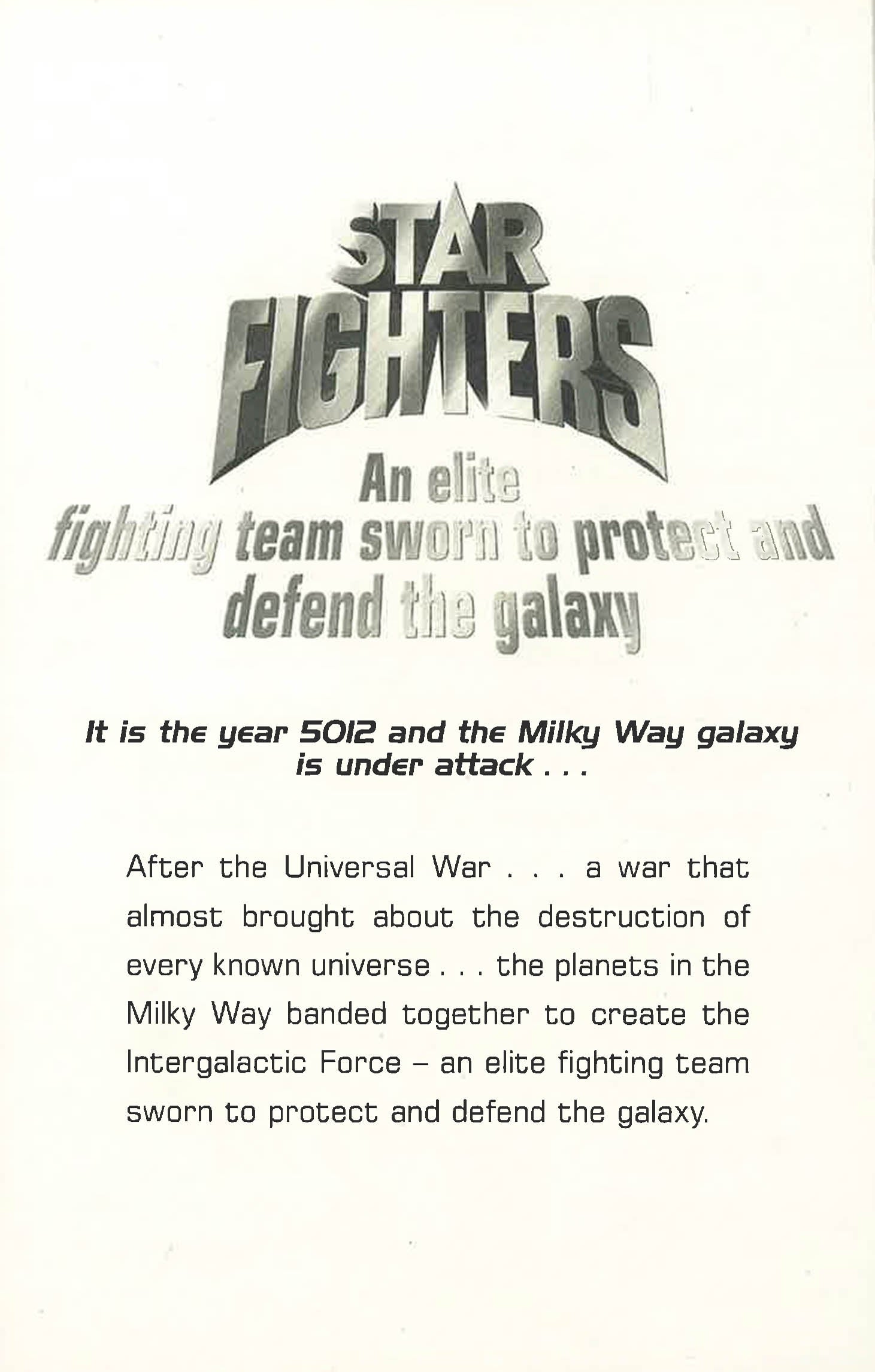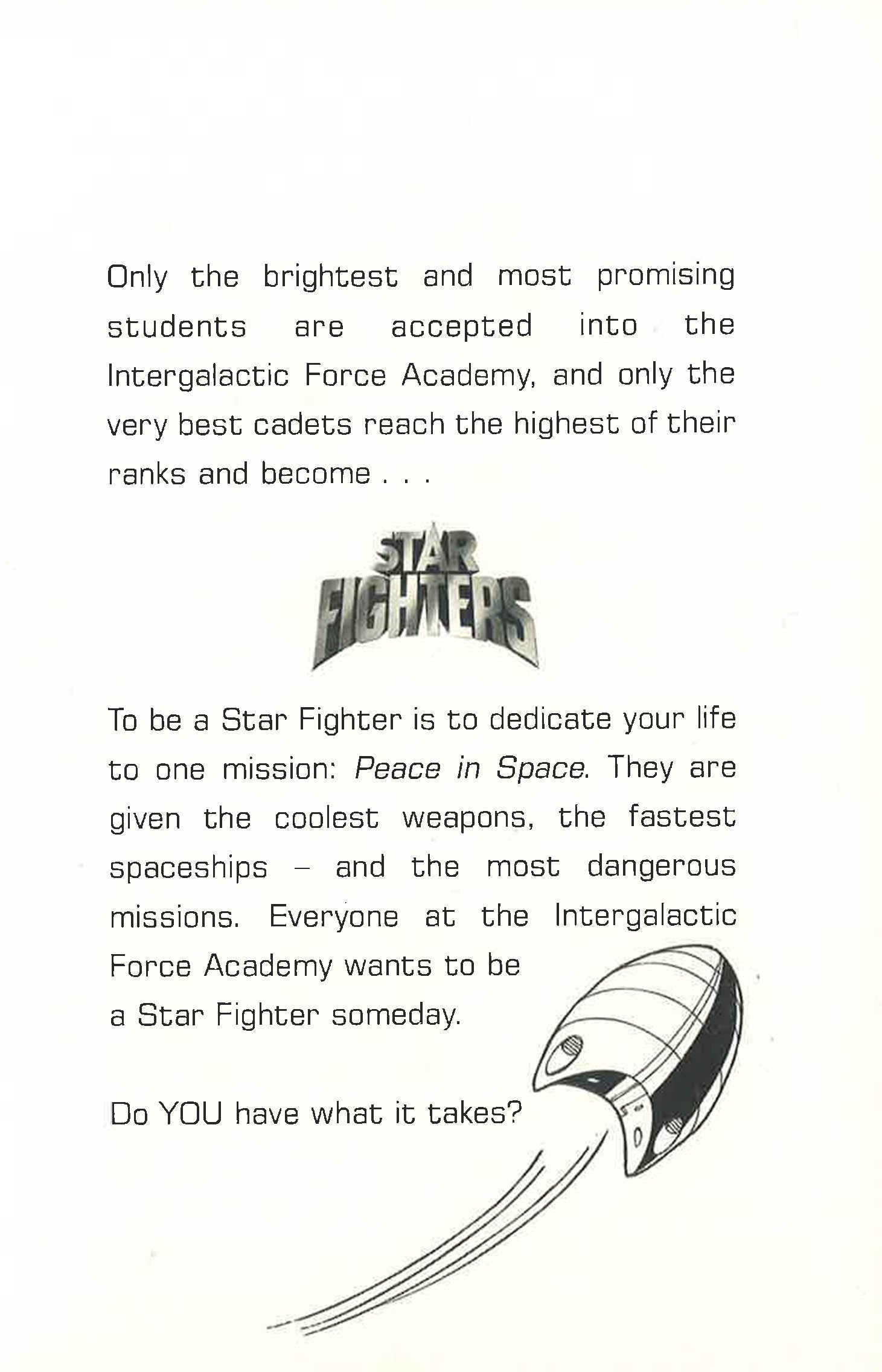 It is the year 5012 and the Milky Way galaxy is under attack. After the Universal War, a war that almost brought about the destruction of every known universe, the planets in the Milky Way banded together to create the Intergalactic Force - an elite fighting team sworn to protect and defend the galaxy. Only the brightest and most promising students are accepted into the Intergalactic Force Academy, and only the very best cadets reach the highest of their ranks and become . . . STAR FIGHTERS! Summoned by a strange distress signal, Peri and the rest of the Phoenix's crew head to the remote desert planet Westrenia to see if they can help. At first the main town seems devoid of life. Then the crew realise that the inhabitants are in hiding. The sheriff of Westrania has been kidnapped and a gang of outlaws is terrorising the town. It's up to Peri to think of a way to outwit the outlaws and get the sheriff back!