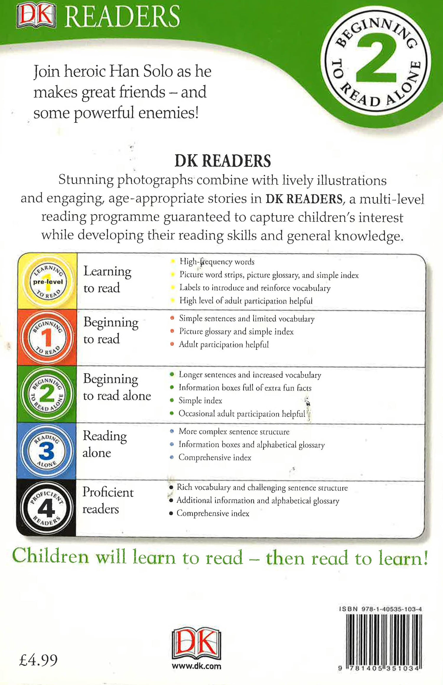 Get your child hooked on reading as they learn all about The Adventures of Han Solo from the Star Wars movies. Designed to engage even the most reluctant reader, your child will learn all about Han Solo, his sidekick Chewbacca, his relationships with Luke and Leia, and his enemy, Jabba the Hutt. Discover all about the Millennium Falcon and the amazing journeys Han goes on. Filled with stunning pictures from Star Wars, it's an out-of-this-world read. And don't forget, there's a galaxy-full of DK Star Wars books to collect.