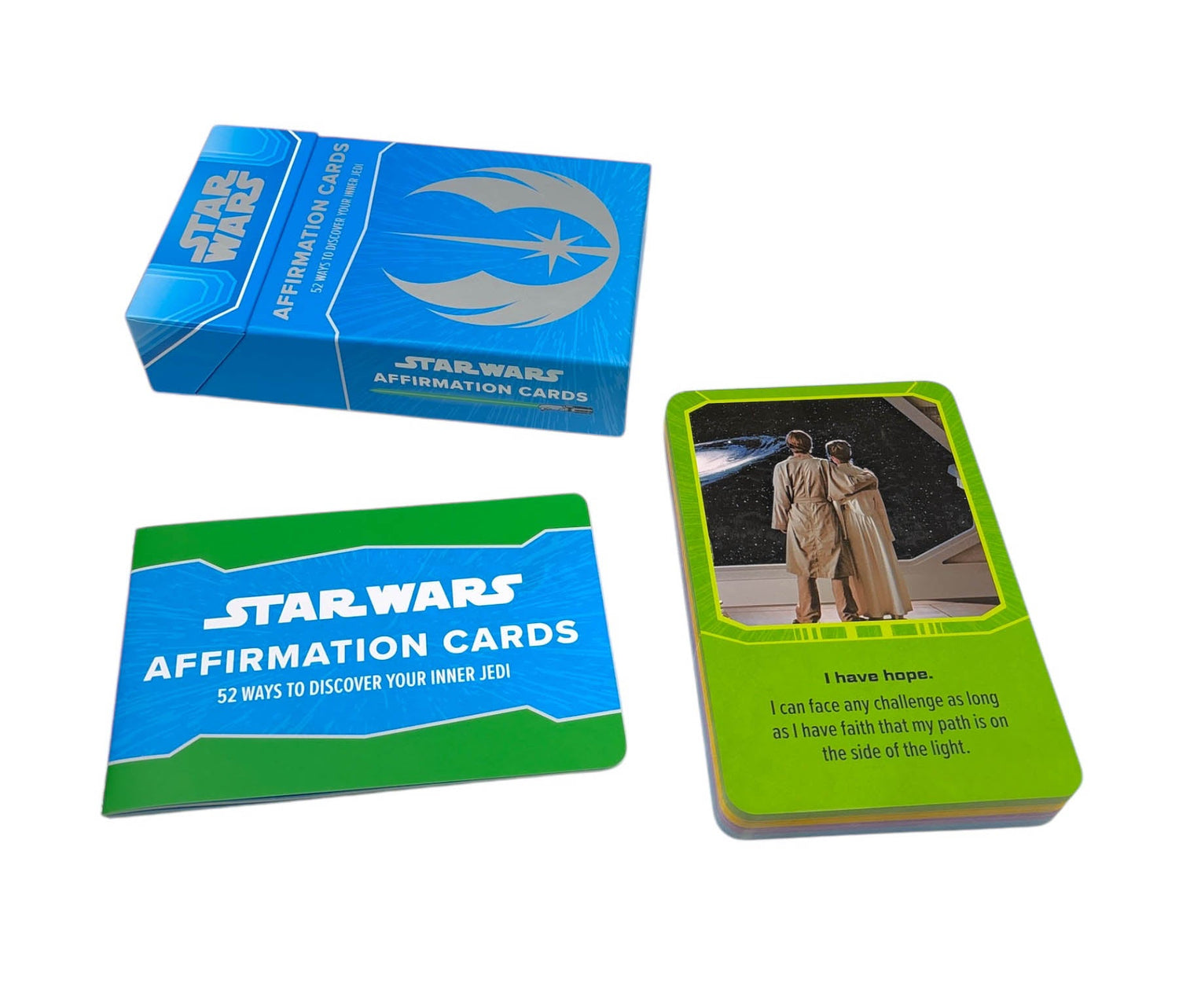 - 52 unique cards featuring Star Wars-themed affirmations, prompts, and more