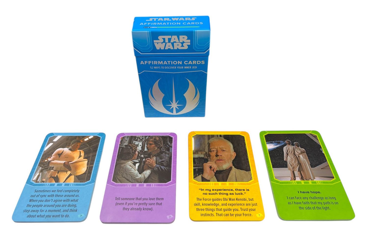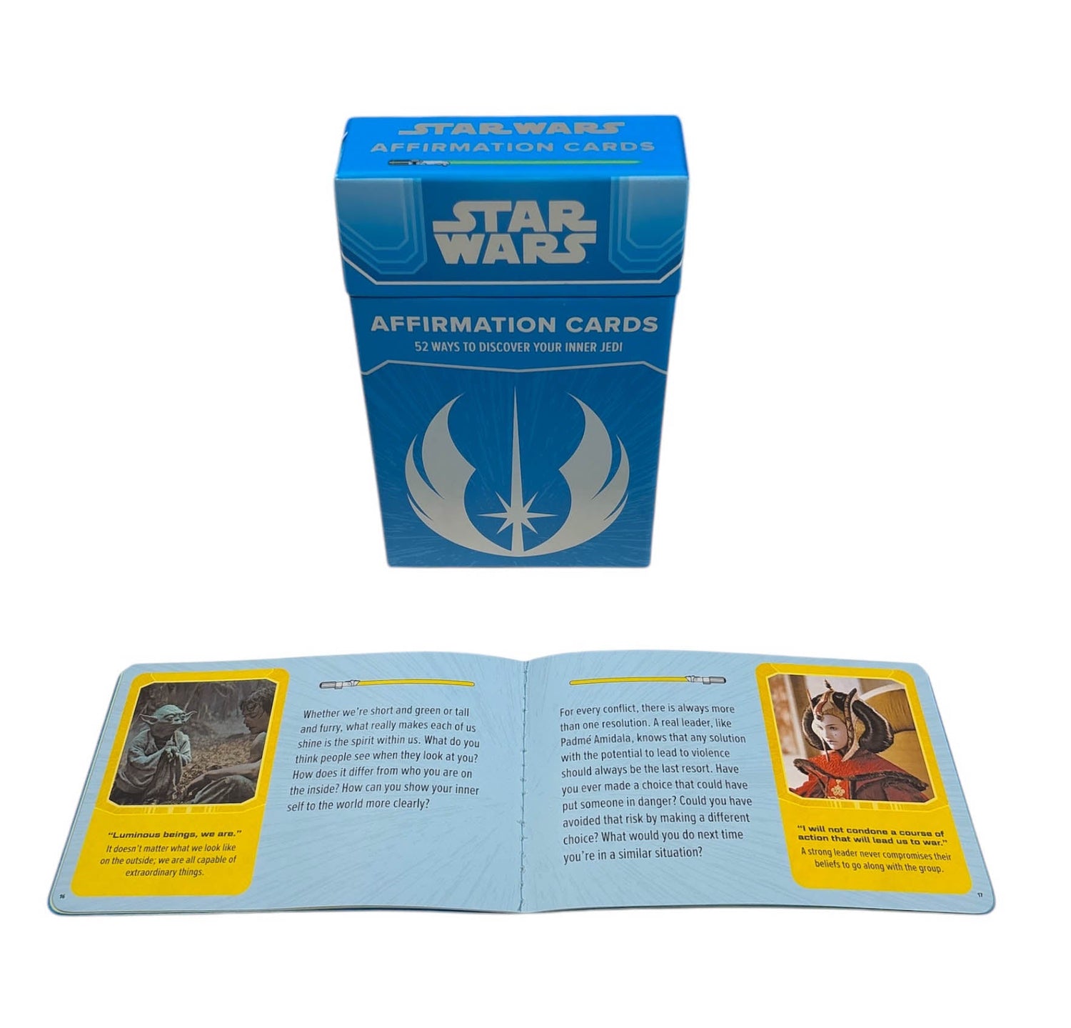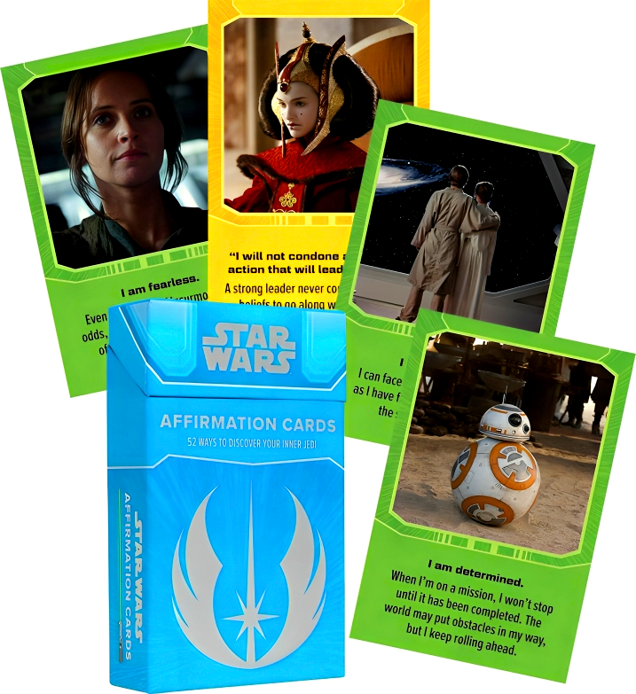 Star Wars Affirmations features a collection of inspirational and philosophical cards focused on mindfulness, inner strength, and positive thinking for all aspiring Jedi.