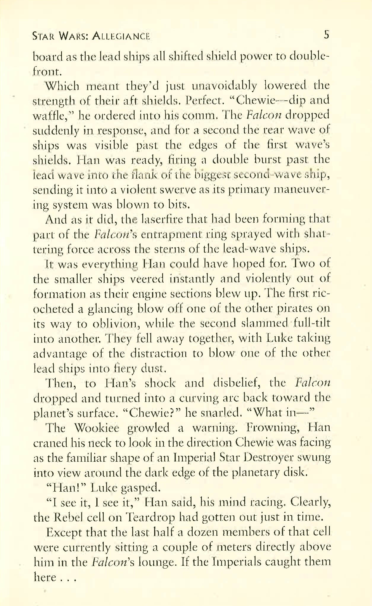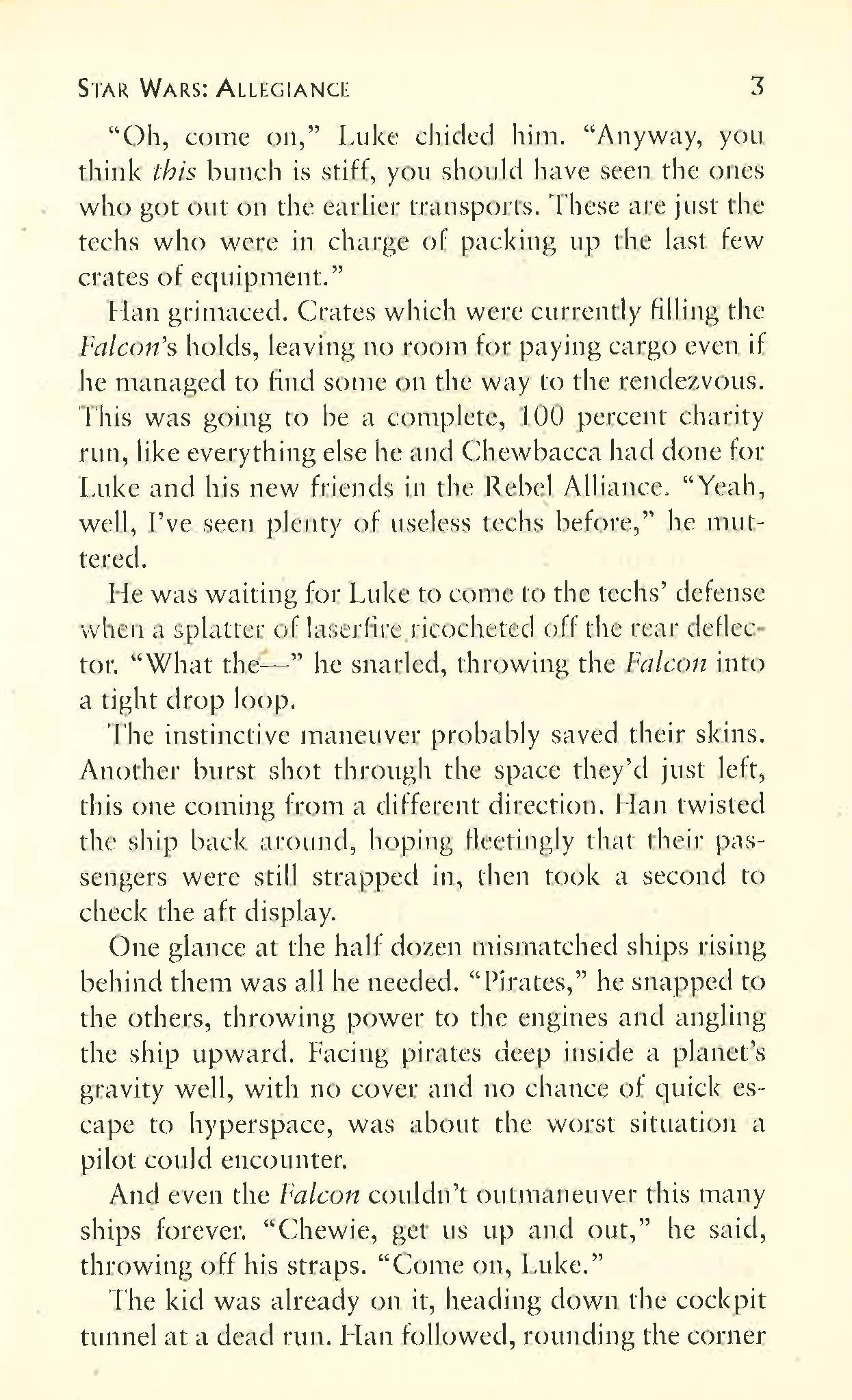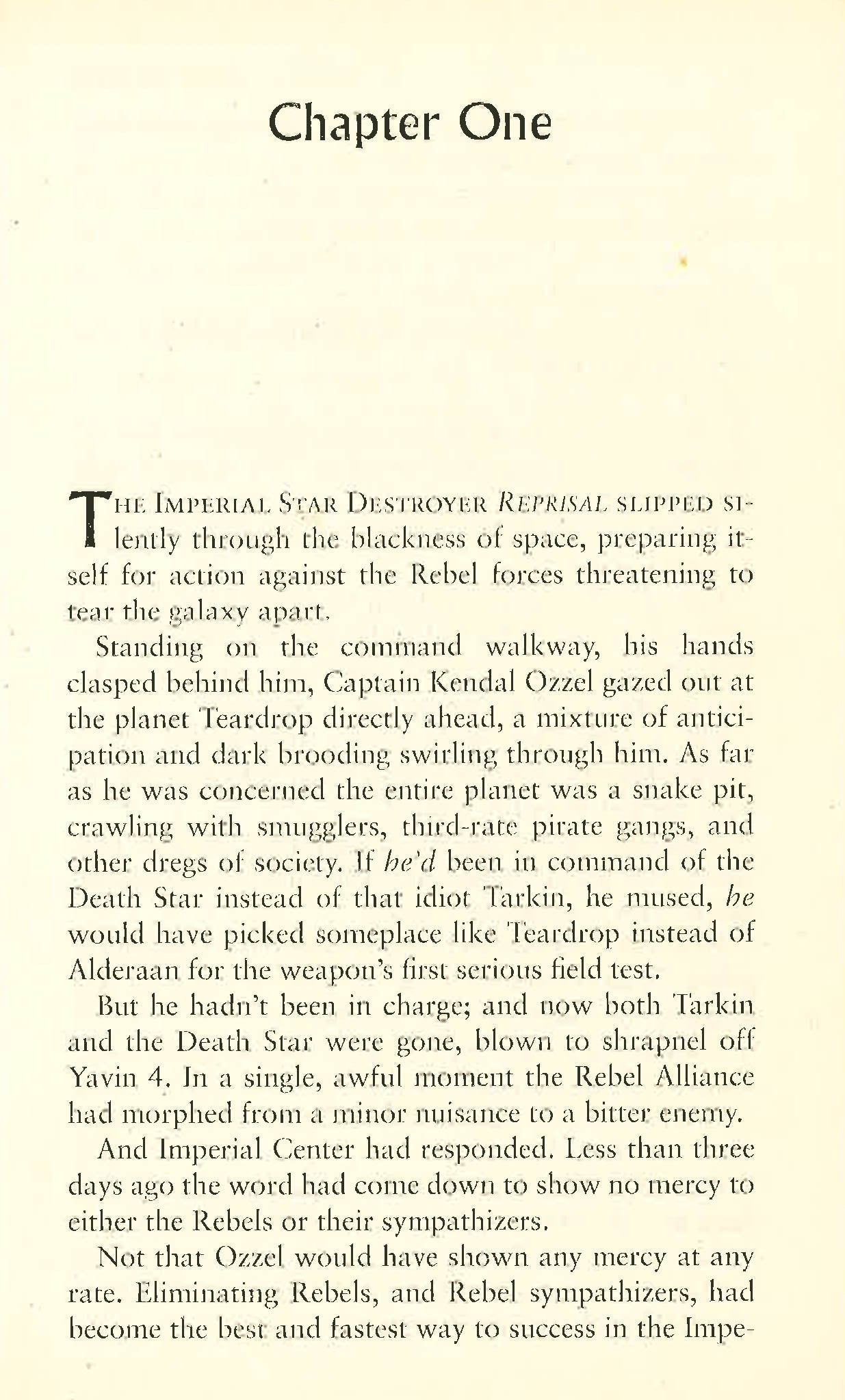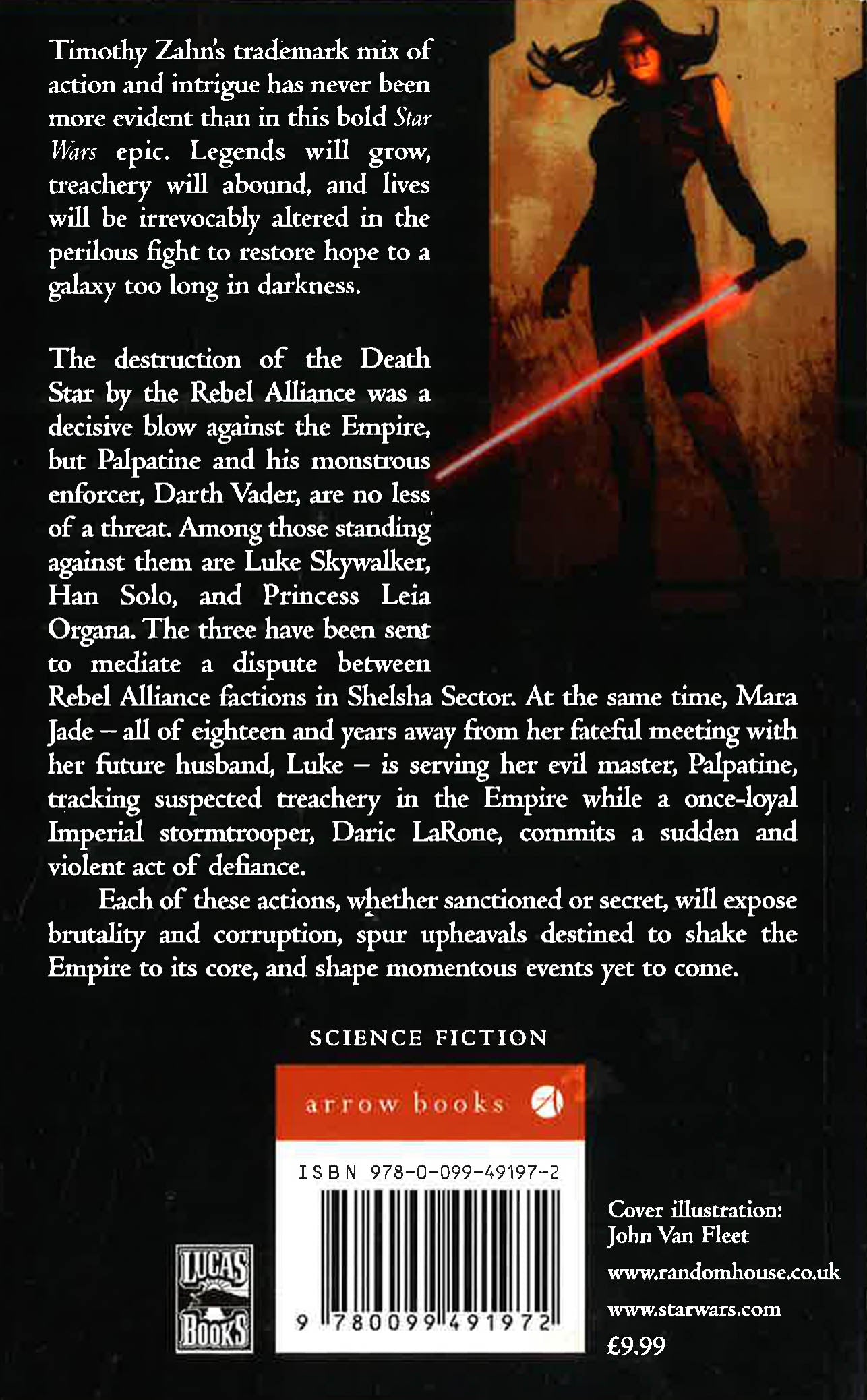 A Star Wars novel set between the events of Epsiode IV: A New Hope and Epsiode V: The Empire Strikes Back, it features a younger Han, Leia, and Luke, as well as Mara Jade. Mara Jade, the Emperor's Hand, is looking into the illicit financial affairs of a planetary governor, hoping to find evidence that he might be funding the Rebellion. Luke, Han, and Chewbacca are sent on a mission to help some rebel supporters. Leia is busy being a diplomat, trying to drum up support for the Rebel Alliance. And a band of 5 stormtroopers, on the run after refusing a direct order, finds itself in the strange position of doing good deeds...and perhaps even aiding the Rebellion. The paths of all of them will crisscross back and forth as they come closer and closer to meeting up with one another...but never quite managing to.