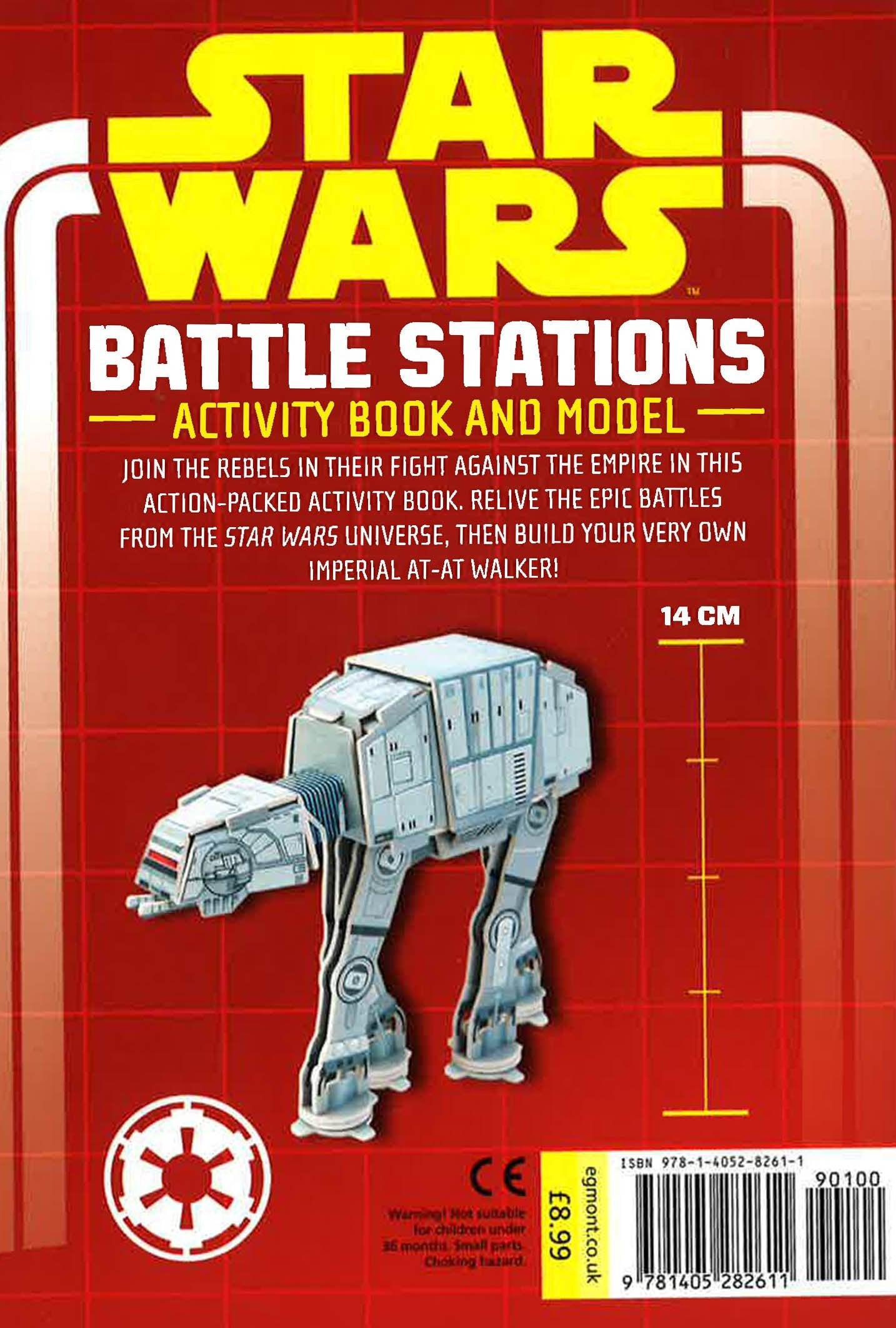 Relive the greatest battles from the Star Wars original trilogy! Join the rebels for the Battle of Yavin as they destroy the evil Death Star, see the mighty Imperial walkers at the Battle of Hoth, and meet the cute Ewoks at the Battle of Endor. Complete mazes, codewords and puzzles in the uniquely illustrated, full colour activity book. Then press out the pieces to create your very own mini AT-AT model, perfect for recreating the famous Battle of Hoth scene from Star Wars Episode IV: The Empire Strikes Back. Have you collected all the titles in the Star Wars Construction Books series: Star Wars Empire Tin Star Wars Rebellion Tin Star Wars: Smuggler's Starship - Activity Book and Model Star Wars: Battle Stations - Activity Book and Model