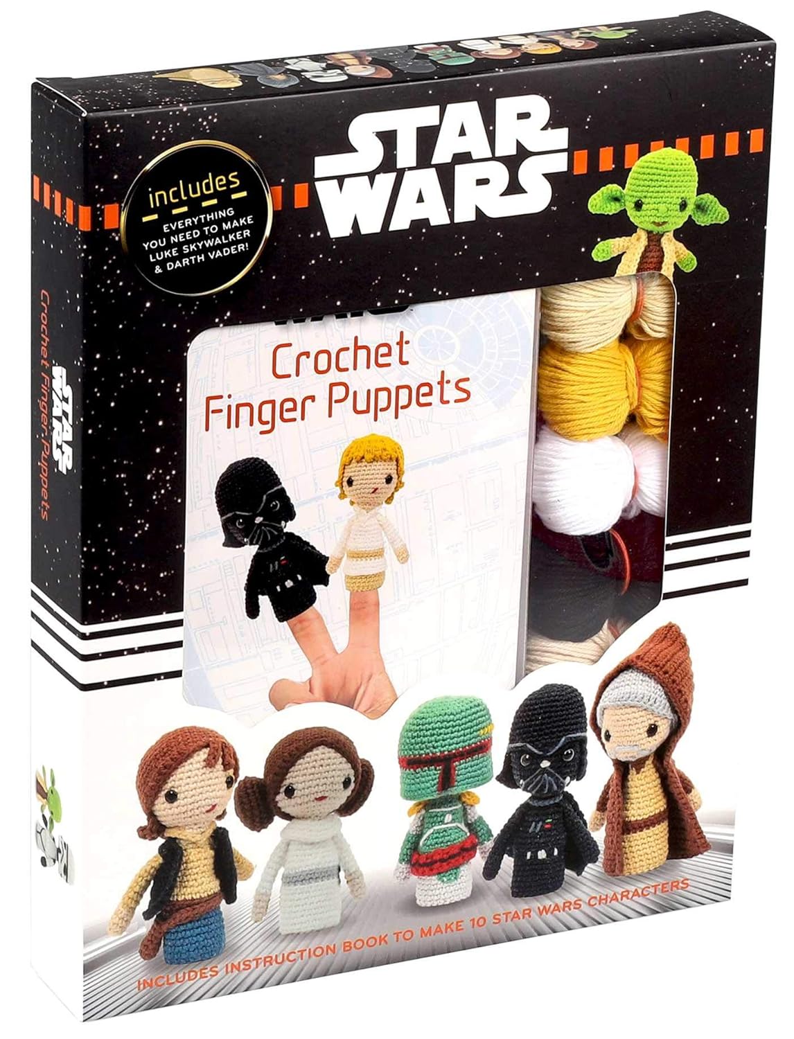 The Force is strong in this kit, and you can summon it right to your hand! Crochet 10 characters from the Rebels and the Empire, put one on each finger, and then let the battle begin! The kit contains an 80-page instruction book with step-by-step directions and full-color photos, a crochet hook, safety eyes, stuffing, a metal tapestry needle, and all the yarn you'll need to create Darth Vader and Luke Skywalker puppets. Create the rest of the characters with yarn of your choice, and you might just save the galaxy!