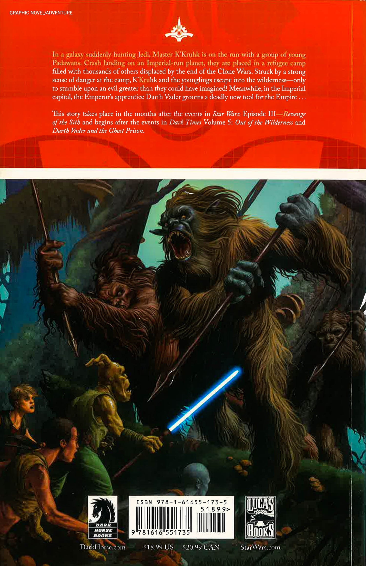 On Coruscant; Darth Vader continues his obsession with ending all Jedi. Across the galaxy; Jedi Master K'Kruhk is on the run with a group of young Padawans. Forced to land on an Imperial-run planet; they hide with other refugees. Immediately; K'Kruhk senses something wrong. They must sneak away; and hope that they can escape the Empire... Collects "Star Wars: Dark Times--Fire Carrier" #1-#5.