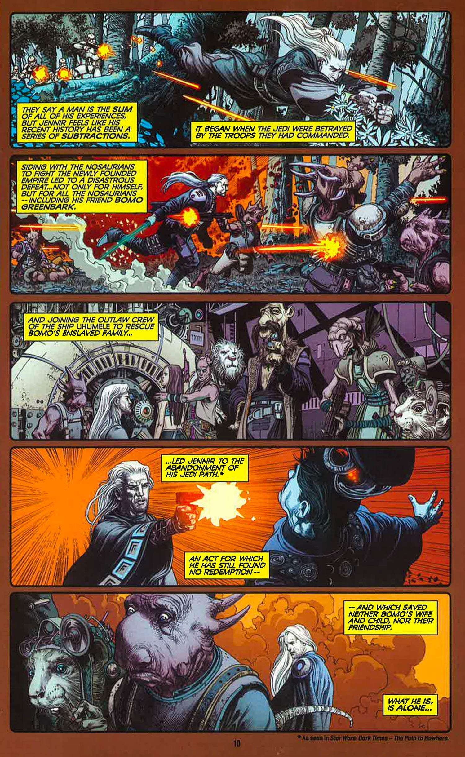 In a time when all Jedi are fugitives, surviving Jedi Dass Jennir is trying to live as an outlaw without actually becoming one. Accepting a job from a mysterious beauty, Jennir sets out to rid her town of slave runners. But when he finds that his employer hasn't been honest with him, he begins to doubt the course she's set him on. Meanwhile, Darth Vader makes a discovery that has him questioning the plans of Emperor Palpatine.