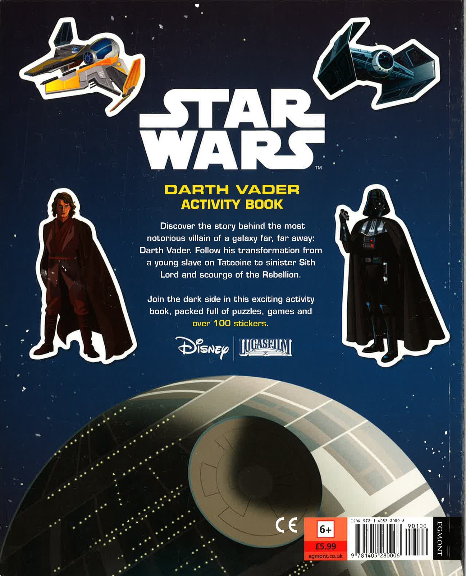 This is the Star Wars activity book that no fan should be without. Rediscover the full story of the galaxy's most sinister Sith Lord, from his humble beginnings as a slave on Tatooine, to his seat as one of the most feared villains in the universe in this exciting activity book. Complete activities that span the first six episodes of the phenomenal saga, including tricky puzzles, clever word games and sticker scenes to complete in any way you like. Joining the dark side has never been more fun. You can look out for: Star Wars Droid Adventure Activity Book and Star Wars: The Force Awakens Activity Book.