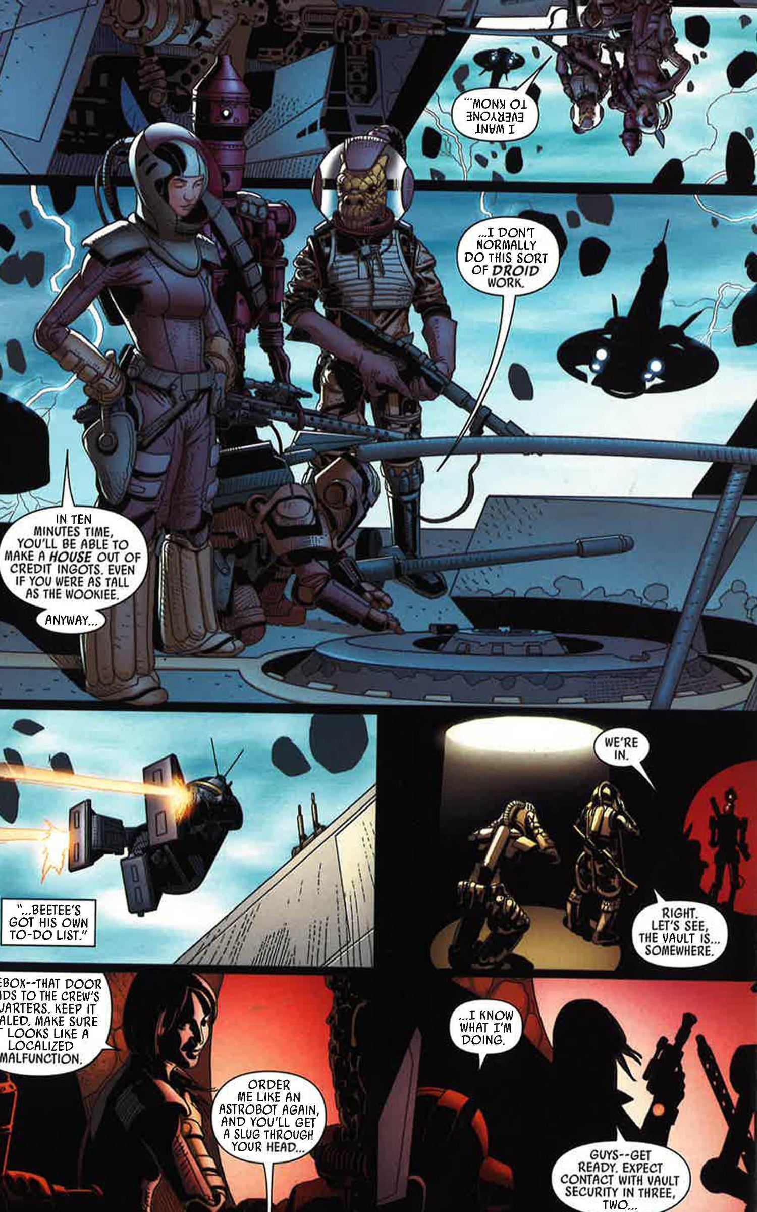 Bounty Hunters on the attack--against the Empire! Vader has a new mission to do for the Empire. Unfortunately, it's completely at odds with his own mission. What's a Dark Lord to do? Plus: Who is Tagge's mysterious new agent?