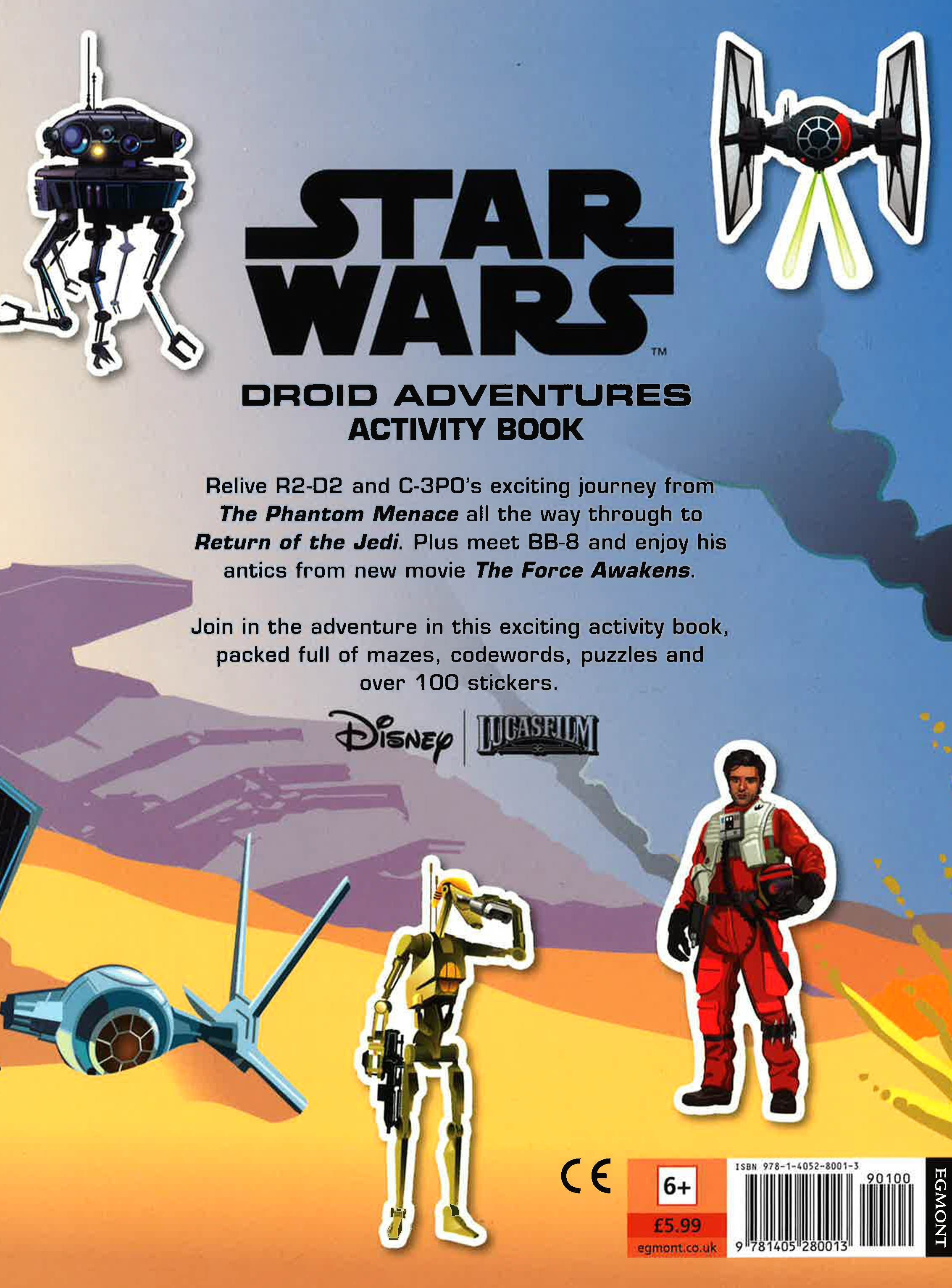 This is a beautifully-illustrated activity book based on the lovable droids, R2-D2 and C-3PO. Relive their exciting journey from The Phantom Menace all the way through to Return of the Jedi. And meet BB-8 and enjoy his adventures from Star Wars: The Force Awakens. The book is packed full of exciting mazes, codewords, puzzles and many more activities, and 3 sticker scenes to complete with 100 stickers! You can look out for: Star Wars: Darth Vader Activity Book with Stickers and Star Wars: The Force Awakens Activity Book.