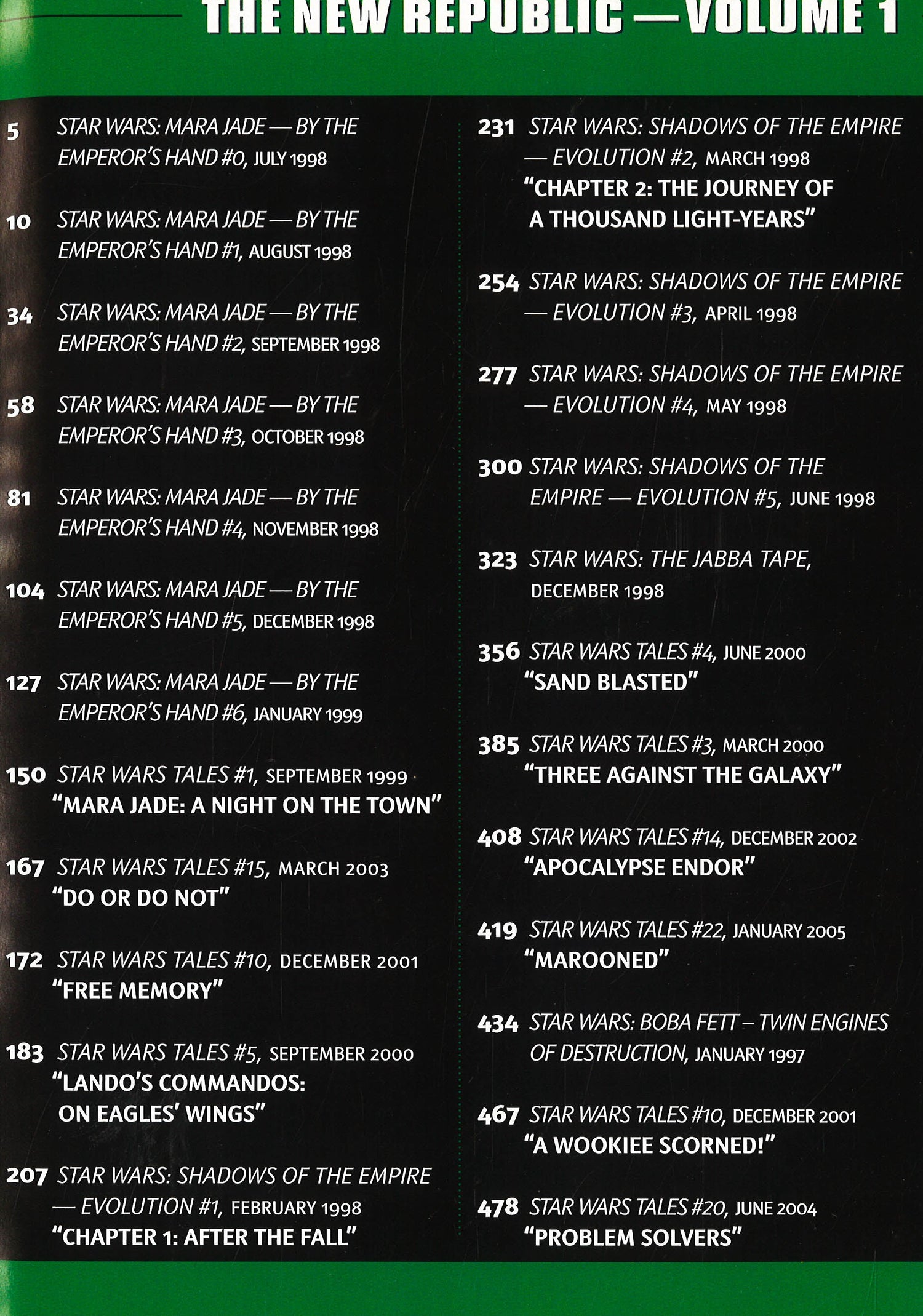 When the Empire falls, a New Republic rises! After the events of RETURN OF THE JEDI, Emperor Palpatine is dead--but can his faithful Hand, Mara Jade, complete her final mission of revenge? Replica droid assassin Guri has also lost her master...but as she struggles for humanity, her android brain makes her a target! When rivals clash over the late Jabba the Hutt's criminal empire, the Bloated one makes a surprising appearance! And a mysterious doppelganger is asking for trouble impersonating everyone's favorite bounty hunter--it's Boba Fett vs. Boba Fett! COLLECTING: STAR WARS: MARA JADE - BY THE EMPEROR'S HAND 0-6, STAR WARS: SHADOWS OF THE EMPIRE - EVOLUTION 1-5, STAR WARS: THE JABBA TAPE, STAR WARS: BOBA FETT-TWIN ENGINES OF DESTRUCTION; MATERIAL FROM STAR WARS TALES 1, 3-5, 10, 14-15, 20; 22.