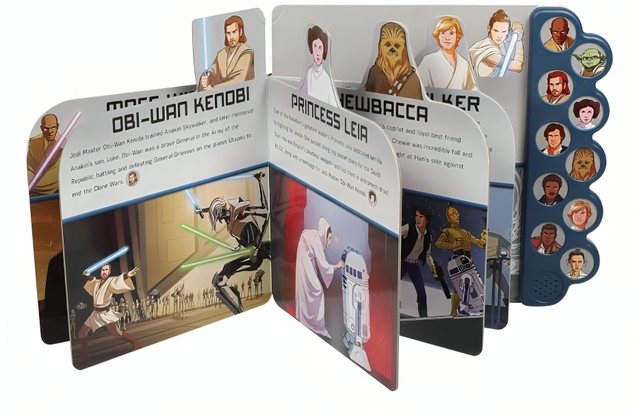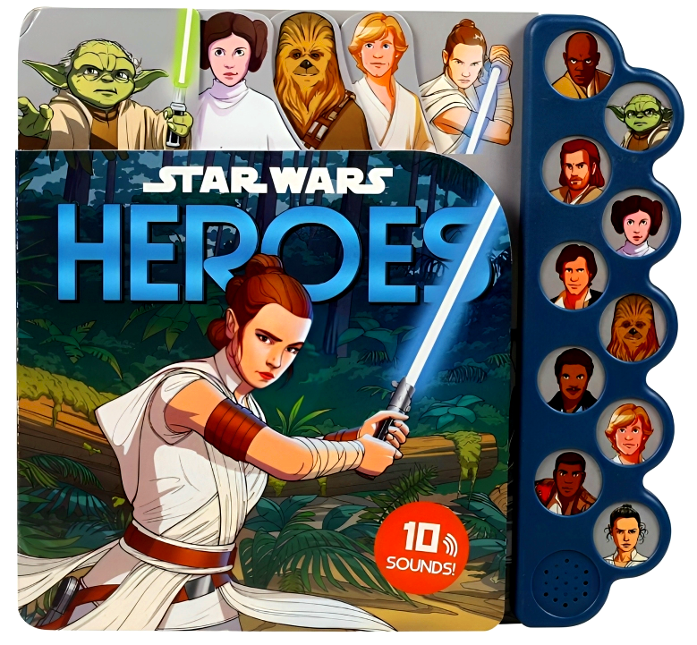 Discover the heroes of the Star Wars saga in the third installment in our 10-button sound book series. Press each button to hear iconic lines of dialogue and cool special effects from a galaxy far, far away!