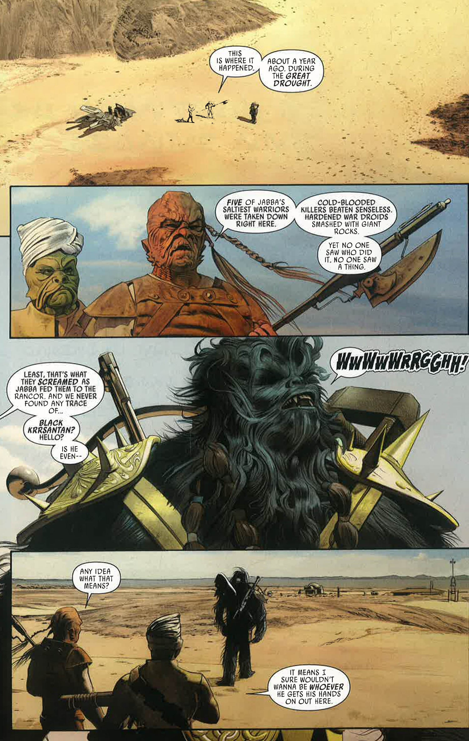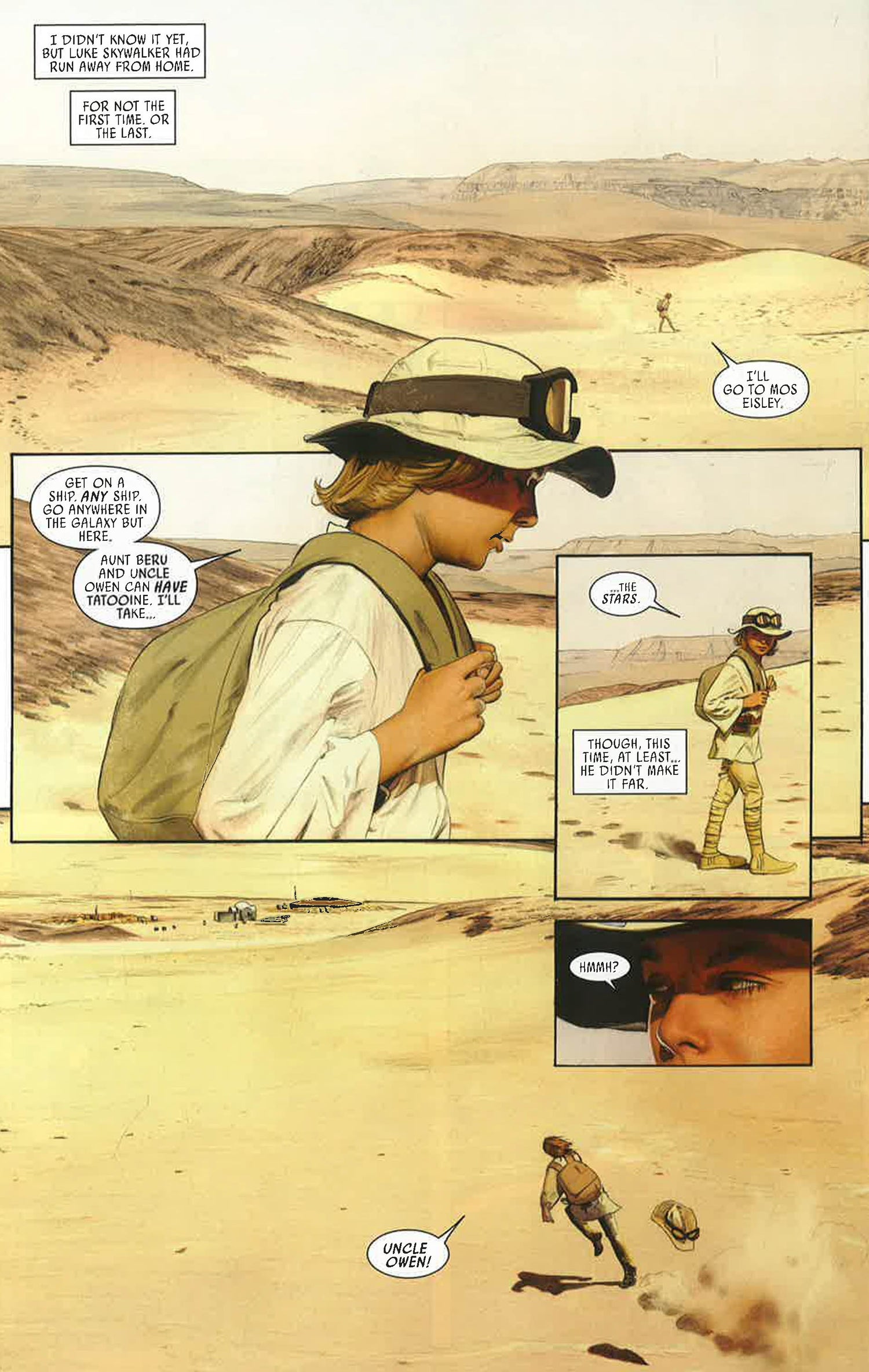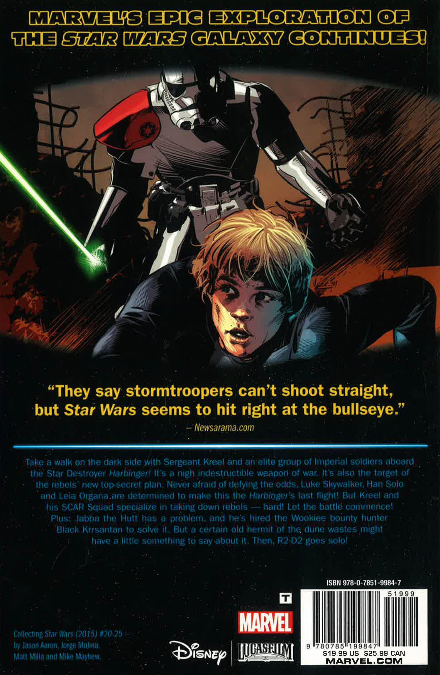 Marvel's epic exploration of the Star Wars galaxy continues! First, take another dive into the journal of Obi-Wan Kenobi! Jabba the Hutt has a problem, and he's hired the Wookiee bounty hunter Black Krrsantan to find out exactly who's been thwarting his men! A certain old hermit of the dune wastes might know a little something about that... Then, take a walk on the Dark Side with Sgt. Kreel and an elite group of Imperial soldiers aboard the Star Destroyer Harbinger! It's a nigh-indestructible weapon of war. But it's also the target of the Rebels' new top-secret plan. Never afraid of defying the odds, Luke Skywalker, Han Solo and Leia Organa are determined to make this the last flight of the Harbinger!