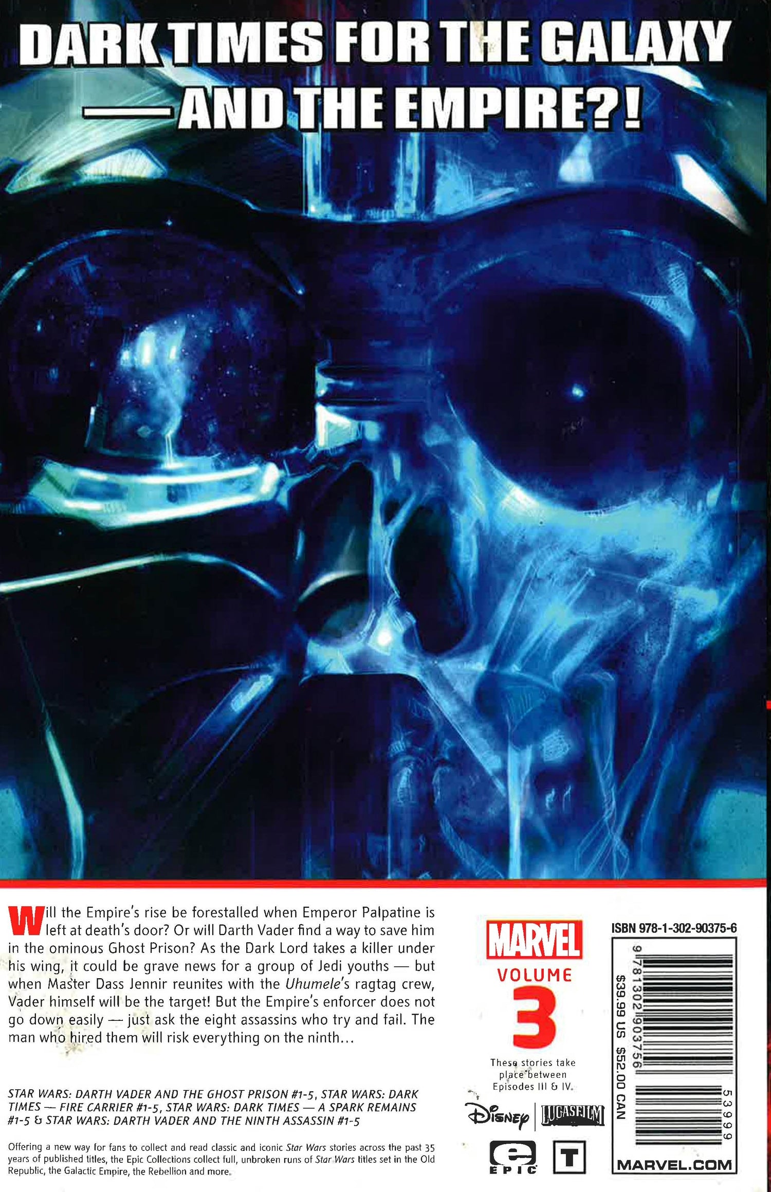Dark times for the galaxy! But will the Empire's rise be forestalled when Emperor Palpatine is left at death's door? Or will Darth Vader find a way to save him in the ominous Ghost Prison? As the Dark Lord takes a killer under his wing, it could be grave news for a group of Jedi youths - but when Master Dass Jennir reunites with the Uhumele's ragtag crew, Vader himself will be the target! But the Empire's enforcer does not go down easily - just ask the eight assassins who try and fail. The man who hired them will risk everything on the ninth... COLLECTING: STAR WARS: DARTH VADER AND THE GHOST PRISON 1-5, STAR WARS: DARK TIMES - FIRE CARRIER 1-5, STAR WARS: DARK TIMES - A SPARK REMAINS 1-5, STAR WARS: DARTH VADER AND THE NINTH ASSASSIN 1-5. ( *This book may have a remainder mark, but be rest assured, they are not used books.)
