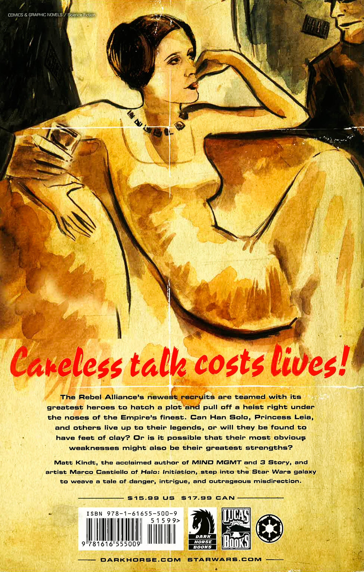 The Rebel Alliance's newest recruits are teamed with its greatest heroes to hatch a plot and pull off a heist right under the noses of the Empire's finest. Can Han Solo, Princess Leia, and others live up to their legends, or will they be found to have feet of clay? Or, is it possible, that their most obvious weaknesses might also be their greatest strengths? Matt Kindt, the acclaimed author of "Mind Mgmt" and "3 Story," and artist Marco Castiello of "Halo: Initiation," step into the "Star Wars" galaxy to weave a tale of danger, intrigue, and outrageous misdirection.