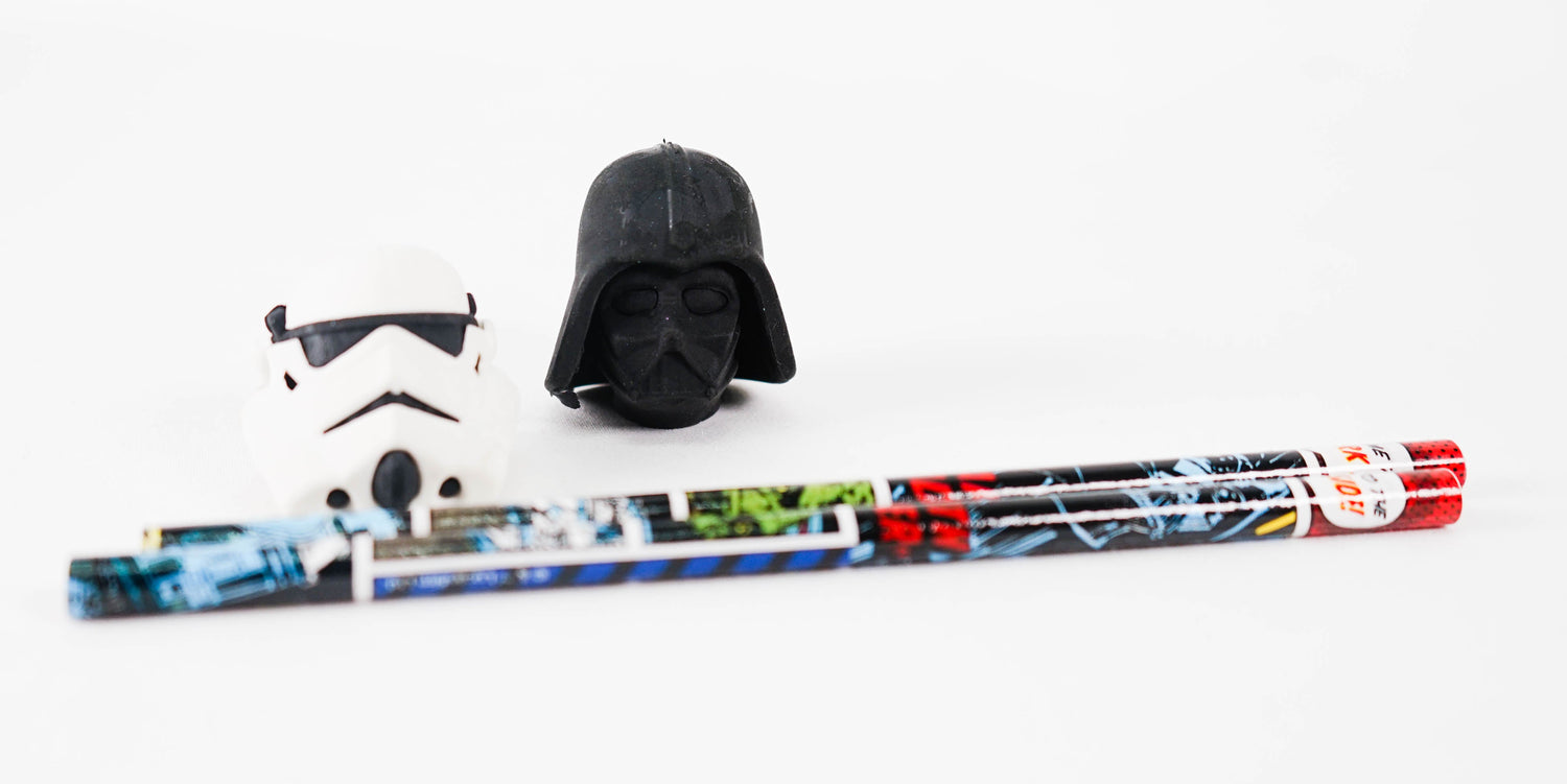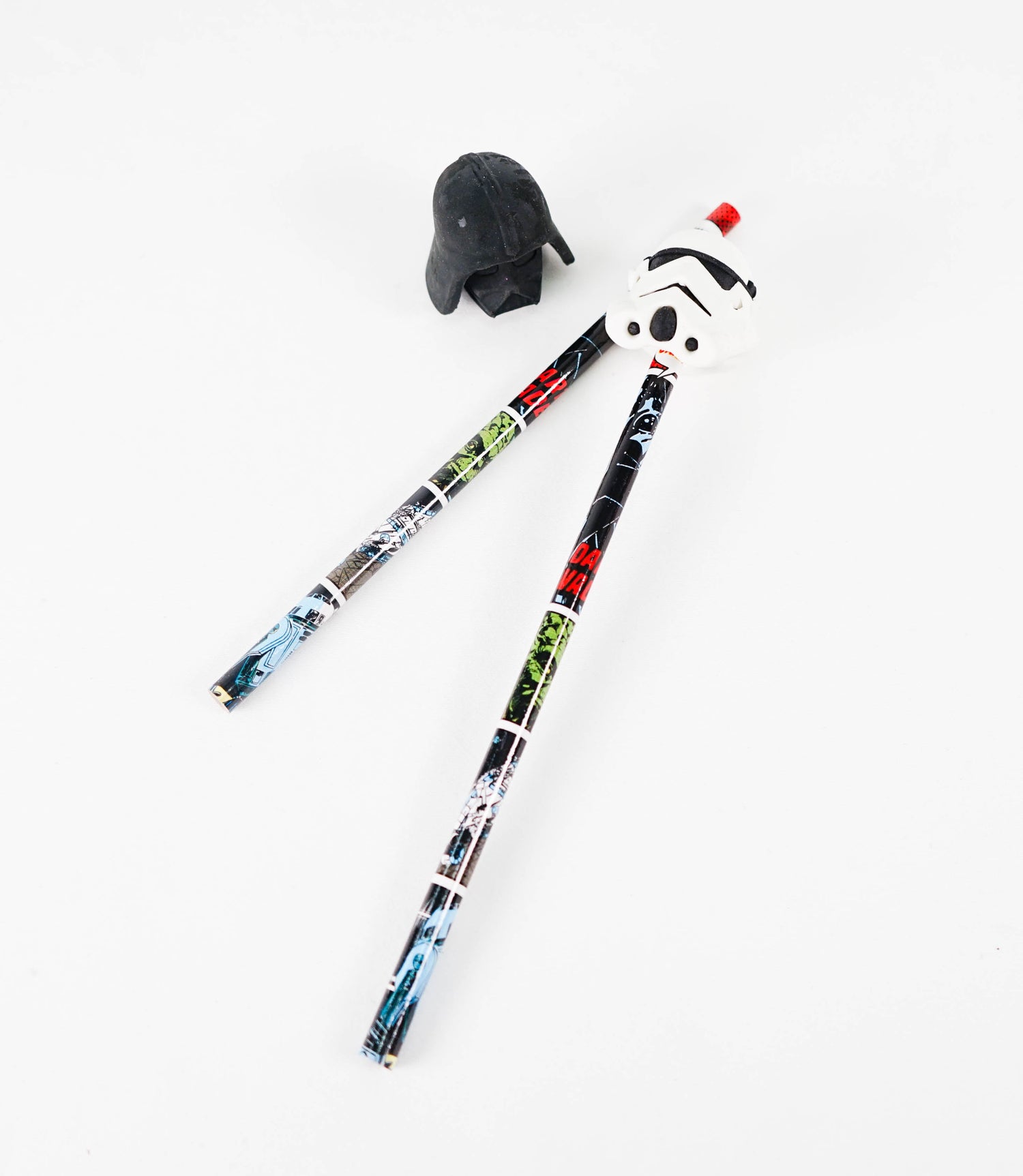This Star Wars stationery pack contains 2 pencils each with a 3D eraser topper. Will you choose Darth Vader or a Stormtrooper to top your pencils in style and correct any writing errors. A great gift idea for any Star Wars fan.