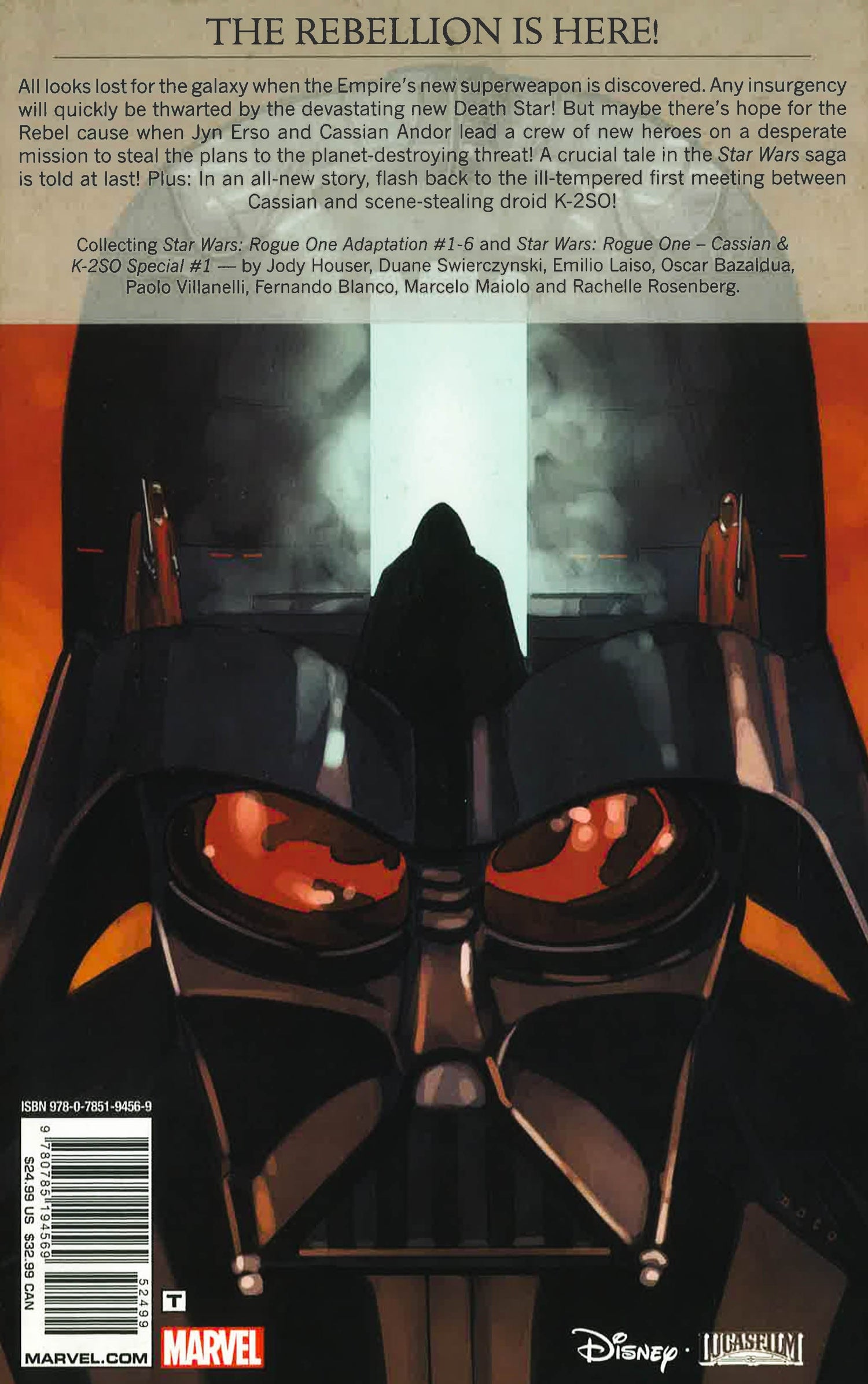 The Rebellion is here! The Rogue One crew makes the leap from the big screen to the comic-book page in this action-packed adaptation! All looks lost for the galaxy when the Empire's new super-weapon is discovered. Any insurgency will quickly be thwarted by the devastating new Death Star! But maybe there's hope for the Rebel cause when Jyn Erso and Cassian Andor lead a crew of new heroes on a desperate mission to steal the plans to the planet-destroying threat! A crucial tale in the Star Wars saga is told at last! Plus: In an all-new story, flash back to the ill-tempered fi rst meeting between Cassian and scene-stealing droid K-2SO!COLLECTING: ROGUE ONE ADAPTATION 1-6, STAR WARS: ROGUE ONE - CASSIAN & K-2SO SPECIAL