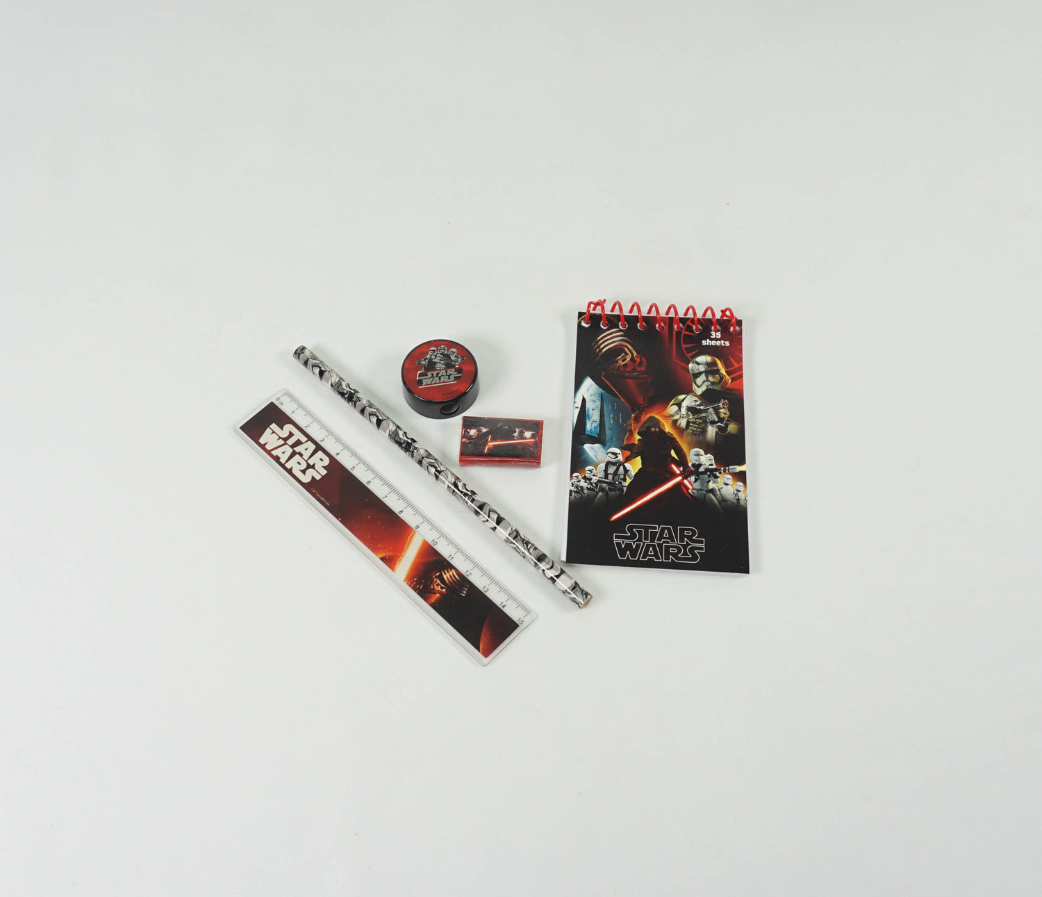 1 mini notepad 1 pencil with eraser 1 ruler 1 sharpener 1 eraser