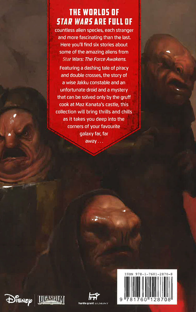 The worlds of Star Wars are full of countless alien species, each stranger and more fascinating than the last. Here you'll find six stories for kids about some of the amazing aliens who appear in the smash-hit movie Star Wars: The Force Awakens. Featuring a dashing tale of piracy and double crosses, the story of a wise Jakku constable and an unfortunate droid, and a mystery that can be solved only by the gruff cook at Maz Kanata's castle, this collection will bring thrills and chills as it takes you deep into the corners of your favourite galaxy far, far away. . . .