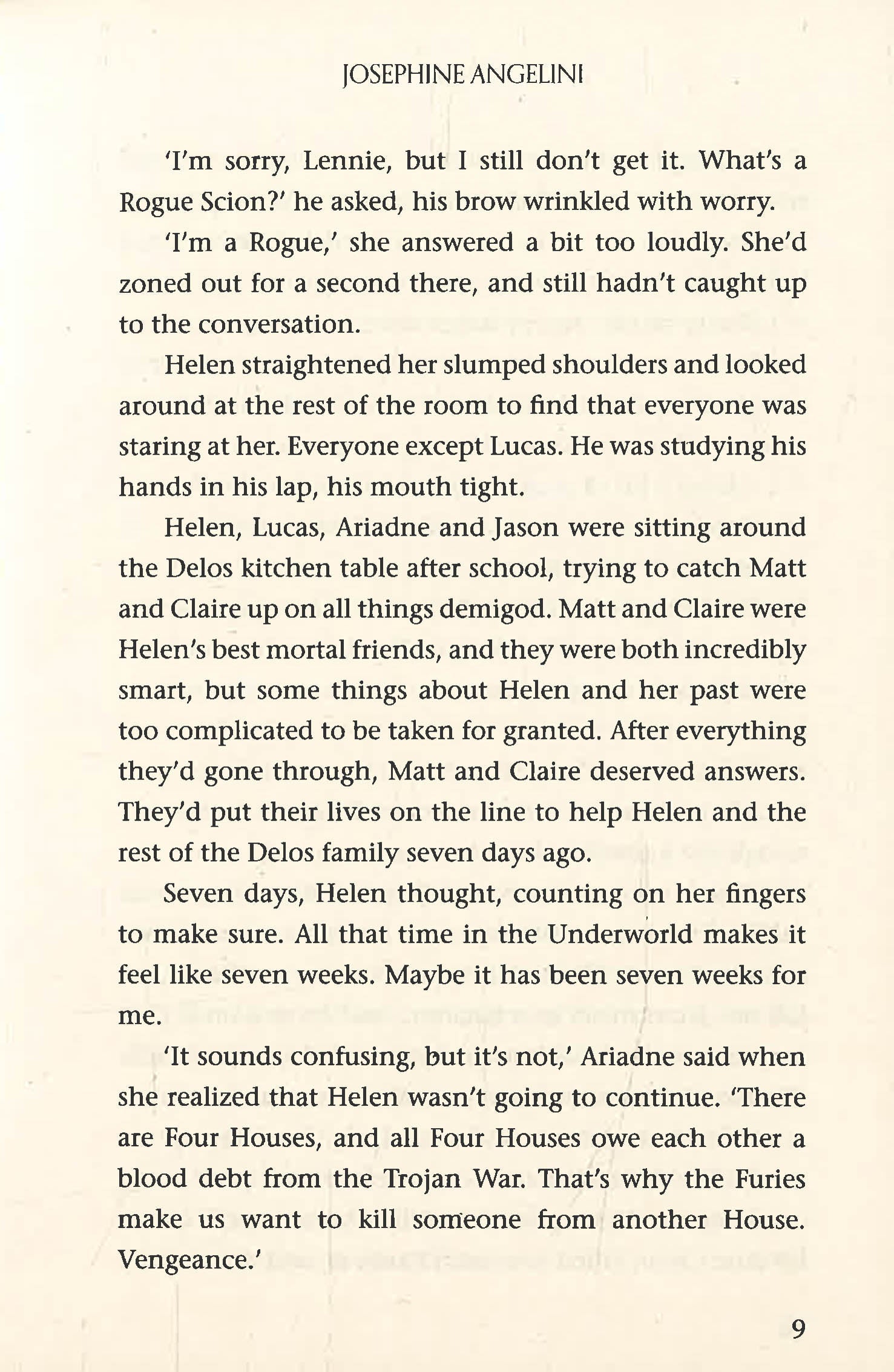Tasked with descending to the underworld and killing the Furies, Helen must endure torture as she wanders aimlessly through hell in her dreams. Although she still trains with the Delos clan, Helen and Lucas are coming to terms with the fact that they cannot be together. Distraught, Helen meets another person down in the shadowy underworld: Orion, descended from Adonis and with the power to control desire, he is the heir to the house of Rome. He's also kind of hot. Confused by her conflicting emotions but glad to have an ally in hell, Helen begins to realize the enormity of her task. . .